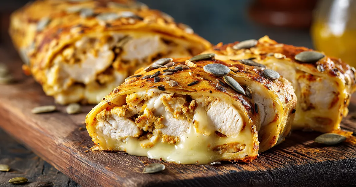 Подаём горячим с овощным салатом, йогуртовым или чесночным соусом. Получается сочный, ароматный рулет с тянущимся сыром и хрустящей корочкой. Готовьте с удовольствием — всем понравится.