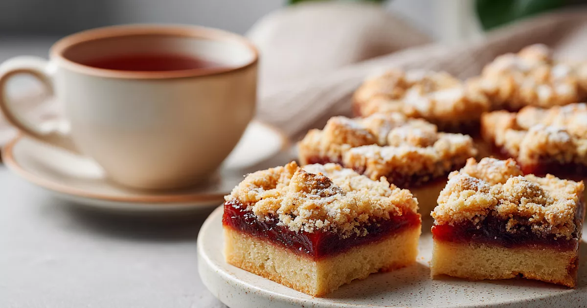 Этот пирог — идеальный вариант зимой, когда хочется использовать запасы варенья. Получается почти как пирожное: мягкое песочное тесто, ароматная начинка и хрустящая миндальная крошка.