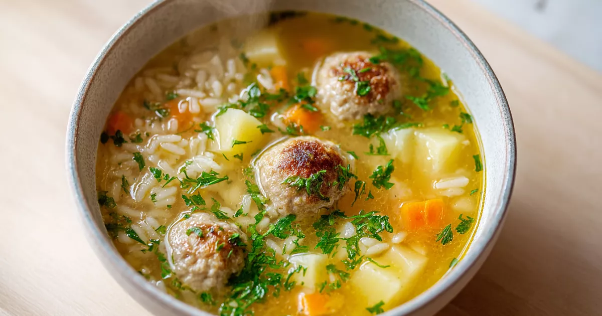 Этот суп — классика домашней кухни: лёгкий рисовый бульон, сочные фрикадельки и овощи. Готовится быстро, получается наваристым и сытным.