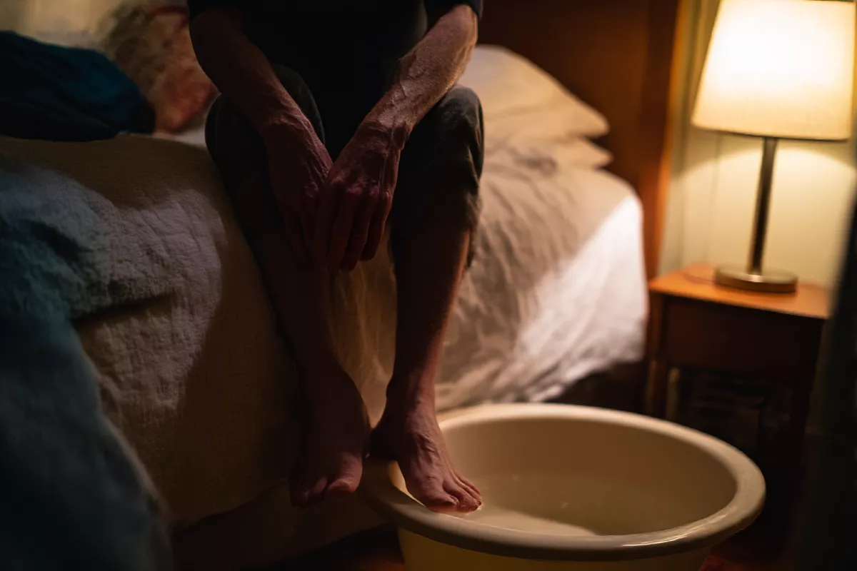 Мелкие нервные волокна регулируют тонус сосудов. Когда они повреждаются, сосуды хуже расширяются, кровоток ухудшается, кожа становится синюшной, холодной на ощупь. Человек мёрзнет даже в тепле, а горячие ванночки дают лишь временное облегчение.
