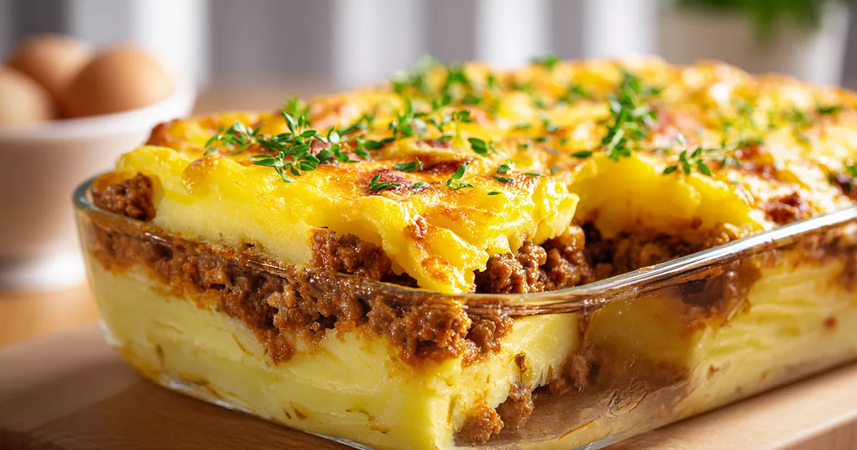 Получается потрясающая запеканка: нежное картофельное пюре, сочная мясная начинка из фарша с луком и аппетитная сырная корочка сверху. Готовится просто, а получается сытный и вкусный обед на всю семью.