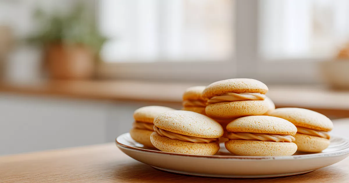 Переложите массу в кондитерский мешок с маленьким круглым отверстием (≈5 мм). Отсадите маленькие капельки или полоски на силиконизированный пергамент (расстояние между ними обязательно!). Выпекайте в разогретой до 150 °C духовке (верх-низ, без конвекции) 14–20 минут (время зависит от духовки). Печенье должно хорошо просохнуть, стать твёрдым и лёгким. Остудите полностью — внутри останется нежная кремовая текстура.