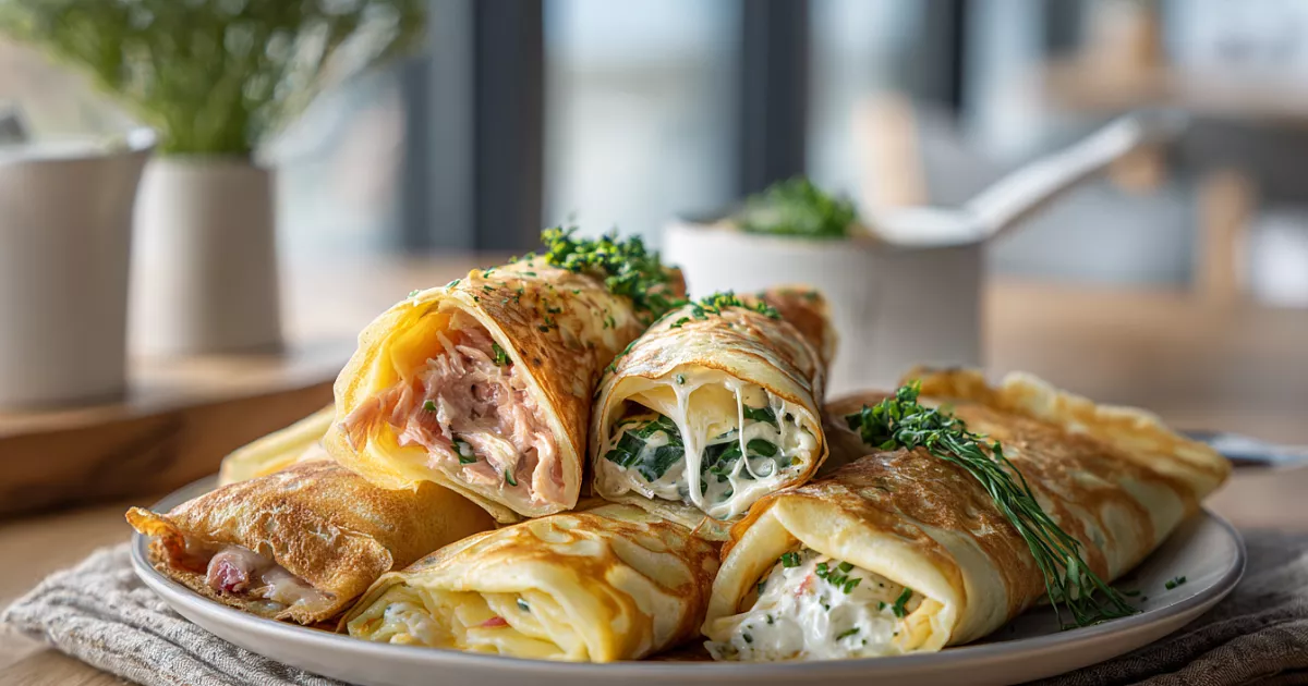 130 г муки, 30 г сахара, 4 г соли, 2 яйца, 100 мл воды, 300 мл молока, растительное масло для жарки, сливочное масло для смазывания. Всё смешать, дать отдохнуть 20–30 минут, выпекать тонко на разогретой сковороде. Получаются как тряпочки — идеальная основа!
