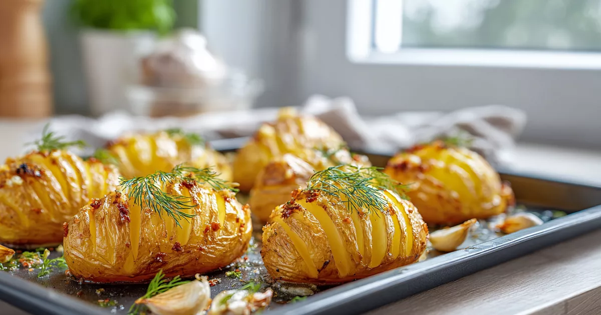 Картошку 1 кг моем тщательно, разрезаем пополам или на крупные дольки. Делаем неглубокие надрезы-гармошку — можно положить по бокам деревянные палочки, чтобы не прорезать до конца. Это поможет специям проникнуть глубже. Опускаем в кипящую воду на 10 минут — так картошка пропечётся быстрее и станет мягкой внутри. Сливаем воду, обсушиваем. Смазываем растительным маслом со всех сторон, солим, перчим, добавляем любимые специи. Выкладываем в корзину аэрофритюрницы или на противень. Добавляем 5–6 зубчиков чеснока в кожуре, завёрнутых в фольгу. Запекаем в аэрофритюрнице при 200 °C 15–20 минут или в духовке при той же температуре 30–40 минут до золотистой корочки. Проверяем готовность зубочисткой.