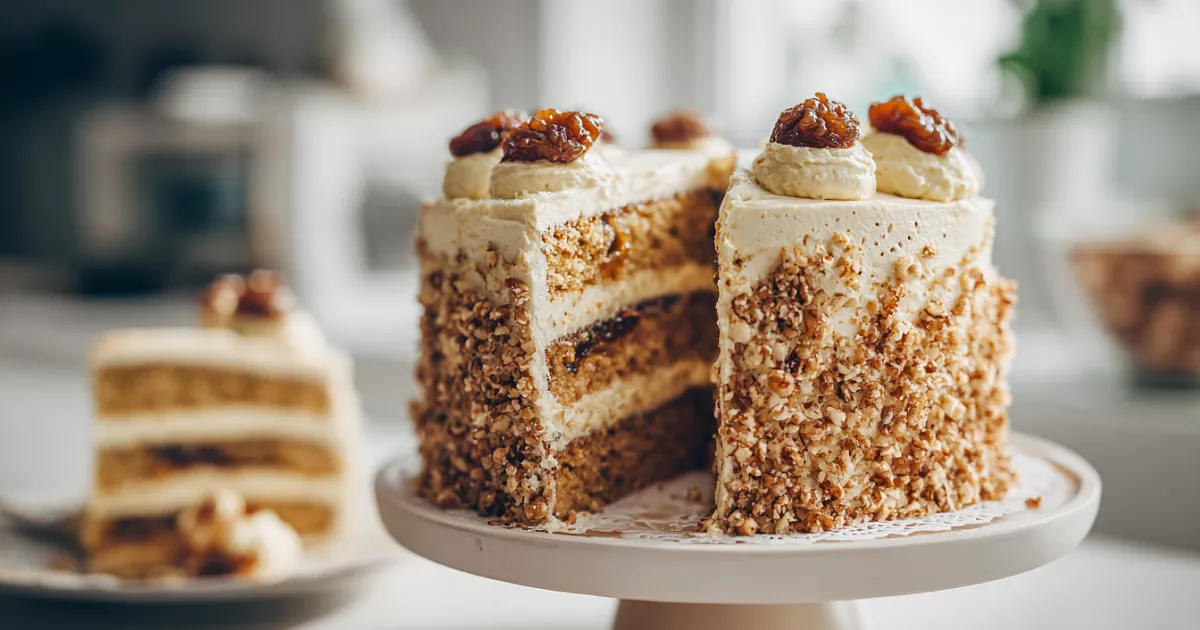 Пять яиц взбиваем с 150 г сахара, щепоткой соли и ванилином до пышной светлой массы — 6–7 минут. Добавляем 80 г мёда, 50 мл растительного масла и 100 г измельчённых грецких орехов. Всыпаем чайную ложку соды (или разрыхлитель) и 200 г муки. Аккуратно перемешиваем лопаткой. Тесто получается воздушным. Форму диаметром 26 см застилаем пергаментом. Делим тесто на три части и выпекаем каждый корж при 170 °C 12–15 минут. Коржи очень мягкие — остужаем на решётке, снимаем бумагу тёплыми.