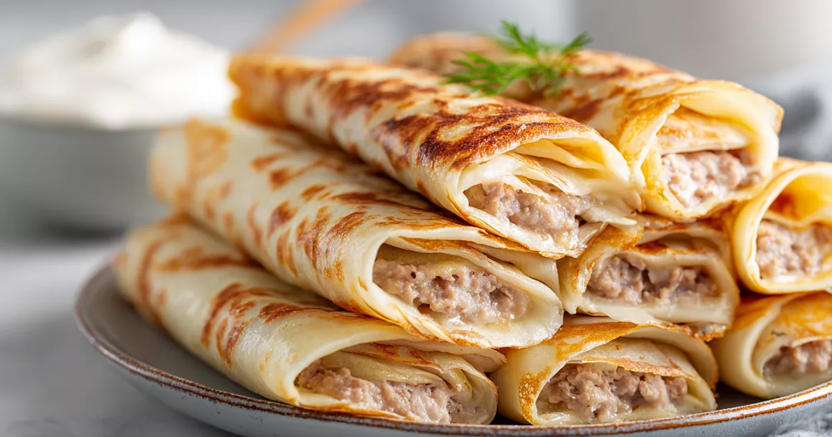 Эта заготовка — настоящая находка для занятых хозяек. Готовим фарш и тесто впрок, замораживаем порционно — и в любой момент можно быстро пожарить нежные блинчики с сочной начинкой.