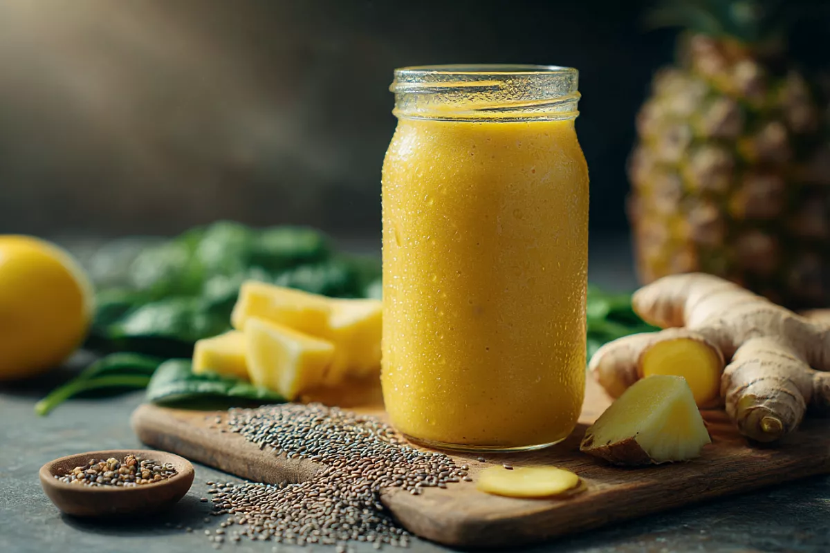 Утренний заряд против боли и отёков. Ингредиенты (1 порция): - ½ ч. л. куркумы (или 2–3 см свежего корня) - ½ ч. л. тёртого имбиря - ½ чашки ананаса (бромелайн борется с воспалением) - 1 банан - горсть шпината или кейла - 1 ст. л. семян чиа или льна (омега-3 для суставов) - щепотка чёрного перца - 250 мл кокосовой воды или миндального молока Приготовление: всё в блендер — взбить 45 секунд. Пить сразу. Эффект: уменьшает утреннюю скованность, даёт энергию без скачков сахара. Пейте каждое утро — через неделю суставы станут легче.
