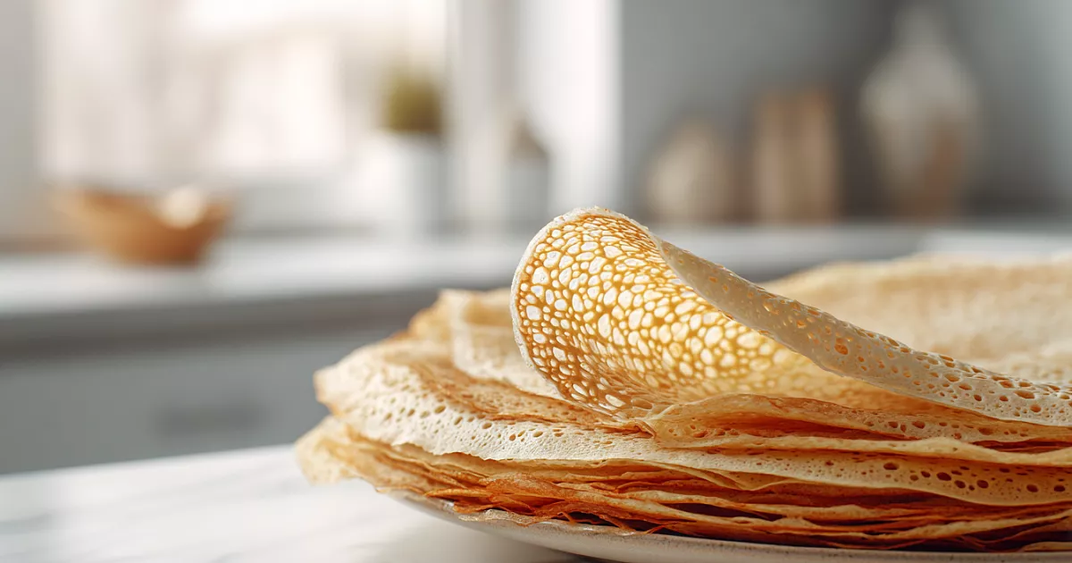 Эти блинчики получаются невероятно тонкими, с красивыми ажурными краями и нежной текстурой. Главный лайфхак — тесто на кипятке и правильный баланс жидкости.