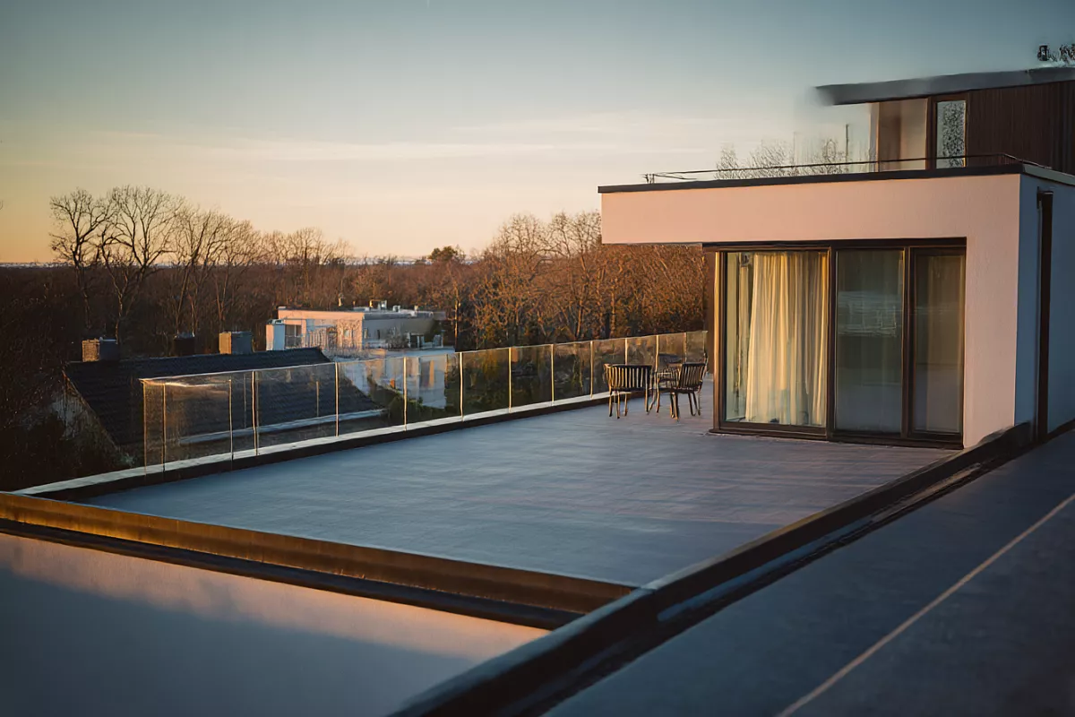 Когда плоская крыша оправдана. Если дом двухэтажный, с интересными объёмами и ломаной формой — тогда она выглядит стильно и гармонично. Одноэтажная «коробка» с плоской крышей часто напоминает старый ларек. Ещё один плюс — возможность сделать эксплуатируемую кровлю: террасу, зону отдыха. Но только если вы готовы к регулярному уходу: чистить от снега, проверять стоки, следить за герметичностью.