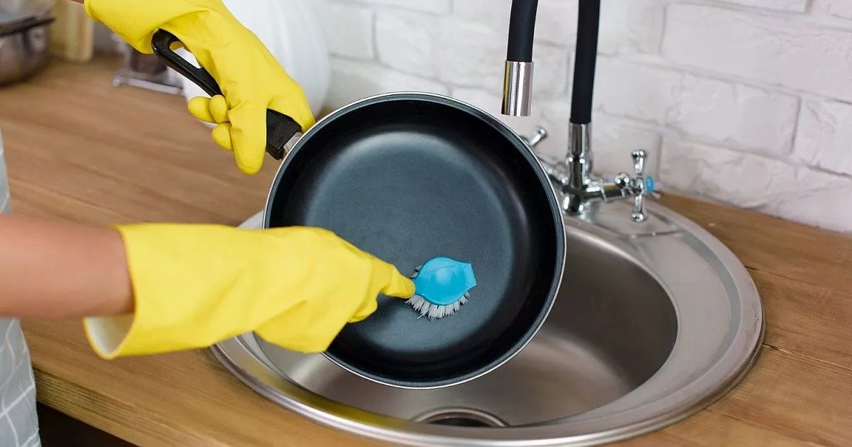 Сода и соль работают вместе как мягкий скраб, помогая избавиться от загрязнений, при этом сохраняя антипригарное покрытие целым. Эта комбинация мягко растворяет даже самые стойкие слои жира и нагара, не царапая поверхности.