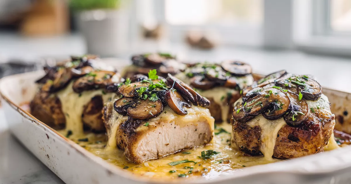 Свиные отбивные в духовке с грибами и сыром часто получаются сухими. Тонкий слой льезона (яйцо + мука) помогает сохранить сочность и улучшить вкус.
