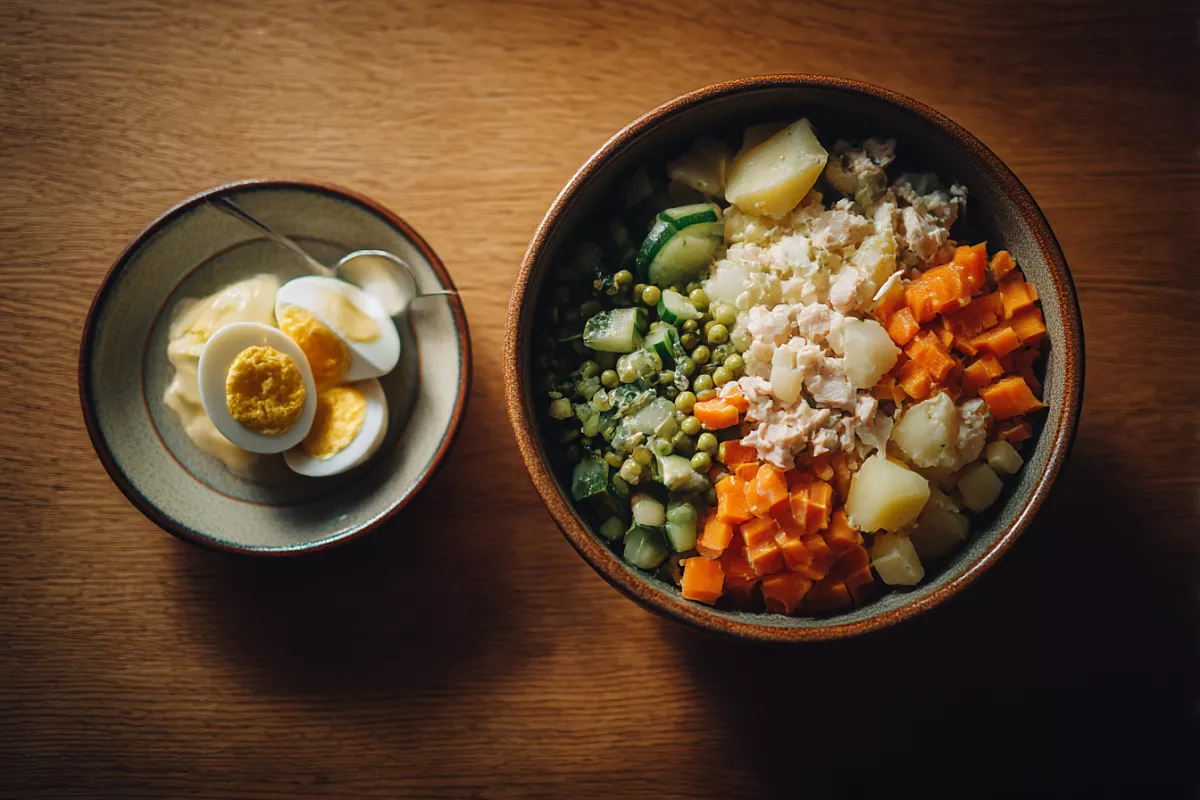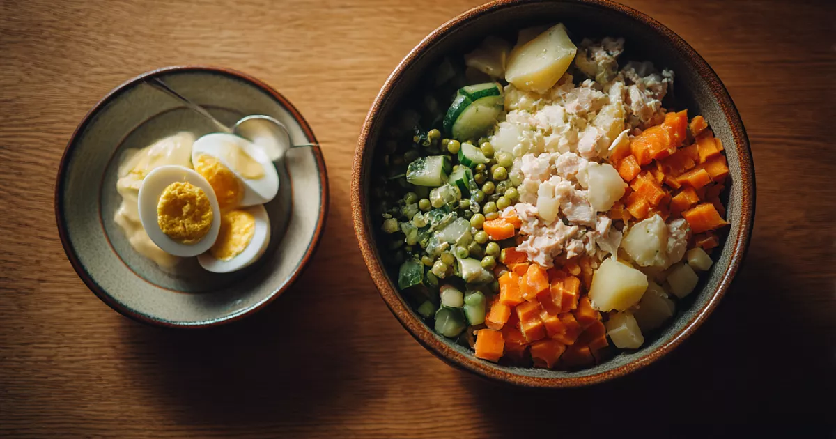 Оливье — любимый салат многих, но часто после него остаётся тяжесть в желудке. Главная причина — майонез и то, как мы его используем. Делюсь простым приёмом, чтобы салат оставался свежим и полезным.