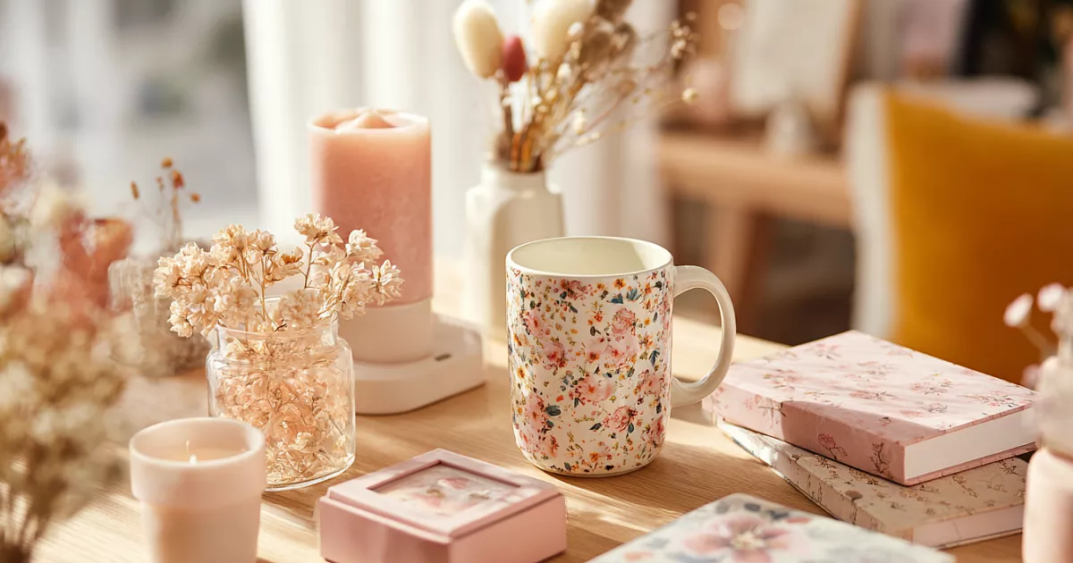 Керамика в тренде: чашки с цветочными узорами, сердечками или минималистичные, тарелки для красивой подачи завтрака, винтажные с орнаментами. Металлические, деревянные или керамические подносы. Вазочки простые для сухоцветов или необычные. Шкатулки перламутровые в форме розы или под хрусталь — до 1000 руб., выглядят дорого. Свечи в бетоне, гипсе или в форме круассана, орешка. Лампы настольные белые, с золотой ножкой или розовые — оживляют комнату. Зеркала необычной формы — золотые, для туалетного столика.