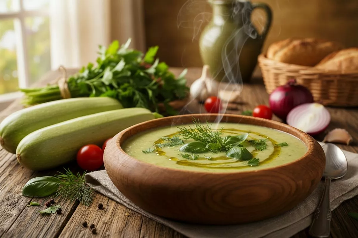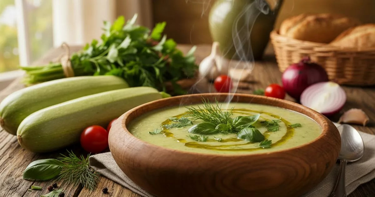 Рецепт сытного кабачкового супа, который удивит богатым вкусом и ароматом, хотя готовится полностью без мясных продуктов.