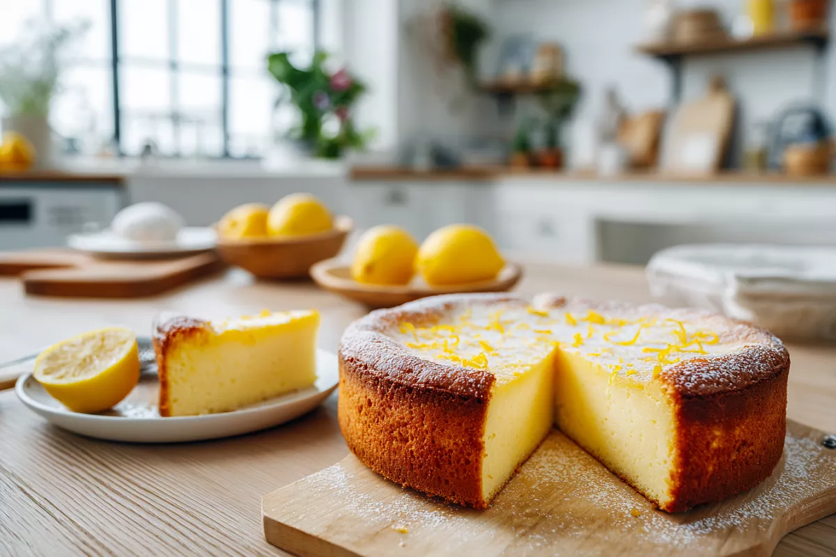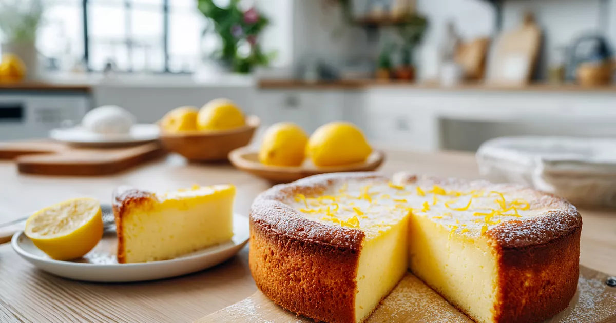 Этот пирог получается удивительно красивым: крем во время выпечки сам укладывается ровным слоем в центре. Нежный, влажный, с ярким лимонным вкусом — настоящий маленький шедевр.