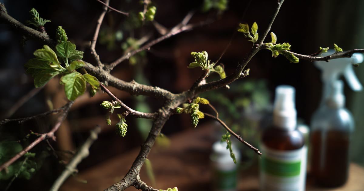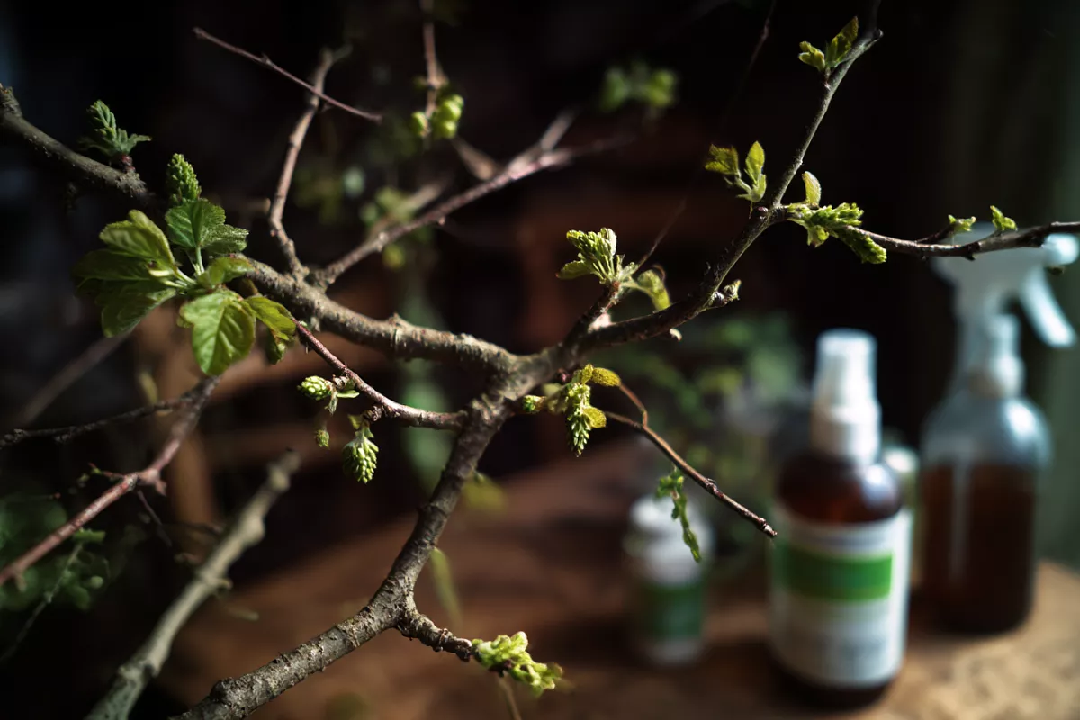Сейчас у многих растений уже зелёный конус или распустились листья — медный купорос и мочевину применять поздно. Первая обработка проводится медьсодержащими препаратами: ХОМ, Оксихом или аналогами. Добавляют прилипатель (Липосам, зелёное мыло или 2 ст. л. любого моющего средства на 10 л). Раствором тщательно пропитывают стволы и ветви — это уничтожает споры основных болезней.