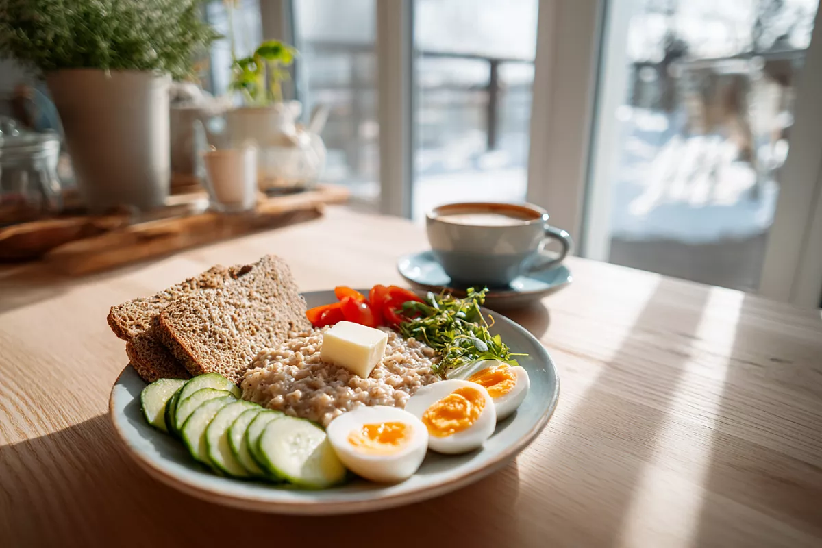 Правильный завтрак — жиры + белок + сложные углеводы + овощи. Примеры: каша с маслом и яйцами, творожная запеканка с овощами, омлет с цельнозерновым хлебом. Ешьте правильно утром — и день пройдёт легко, без голода и срывов. Здоровья и вкусных завтраков!