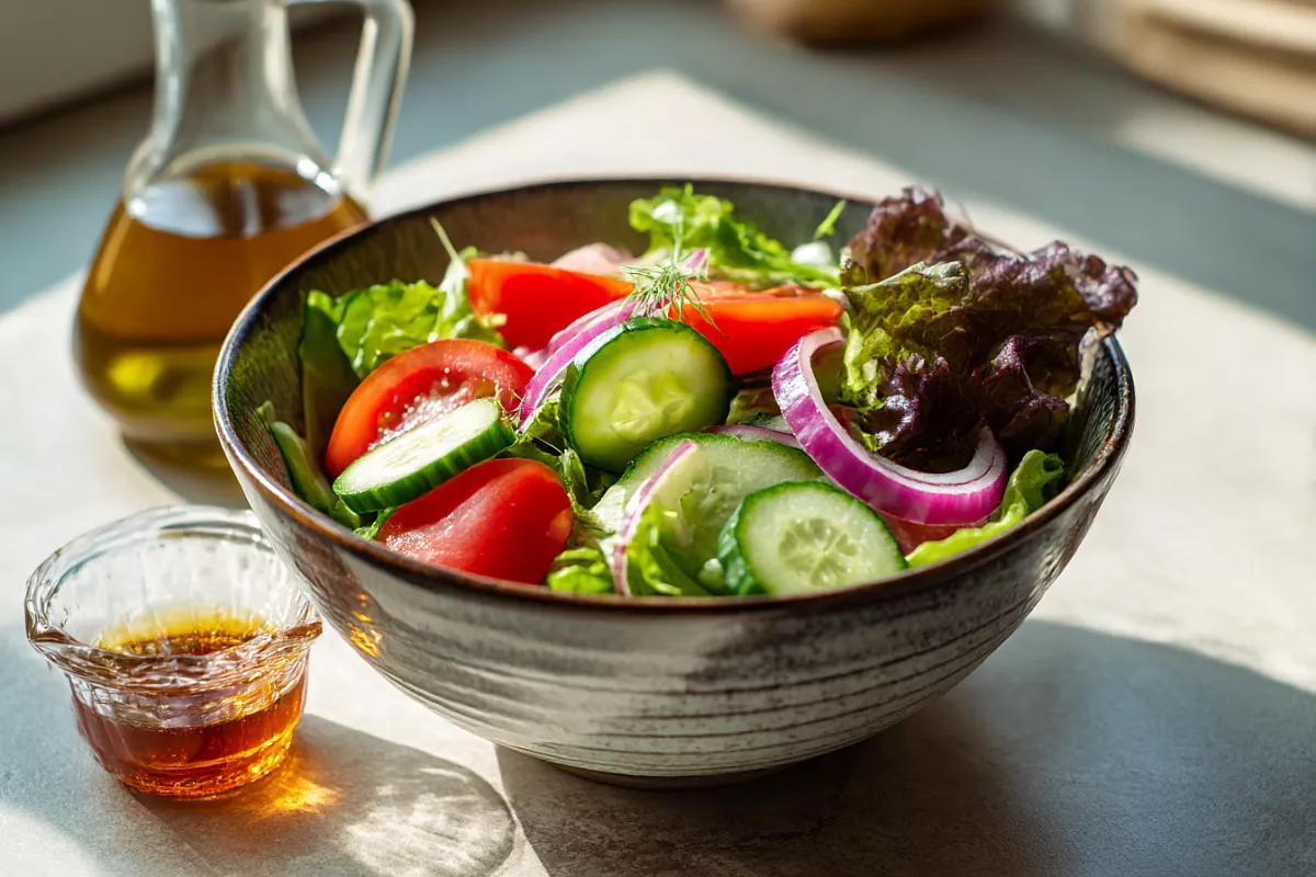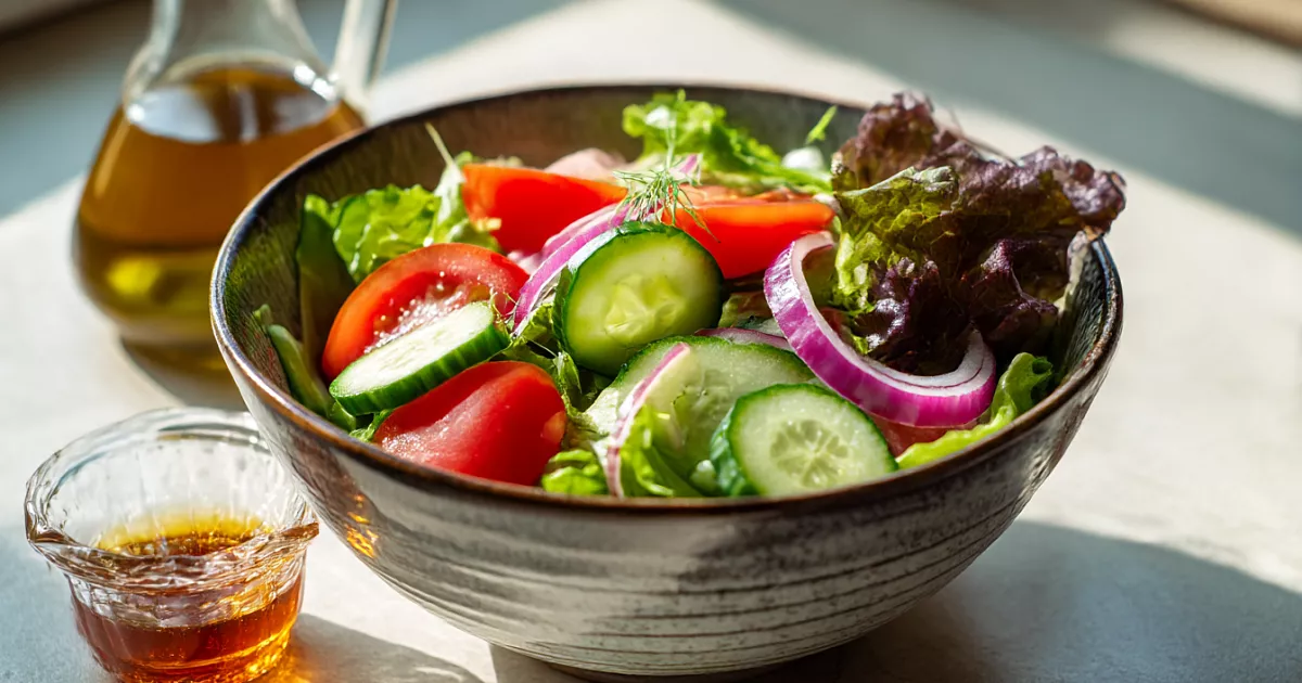 Если в салате много нейтральных овощей (огурцы, помидоры, листовой салат), разница между уксусами заметна сильнее. В блюдах с яркими вкусами (сельдерей, фенхель, редис, лук) уксус часто «теряется» — остаётся только общая кислинка.