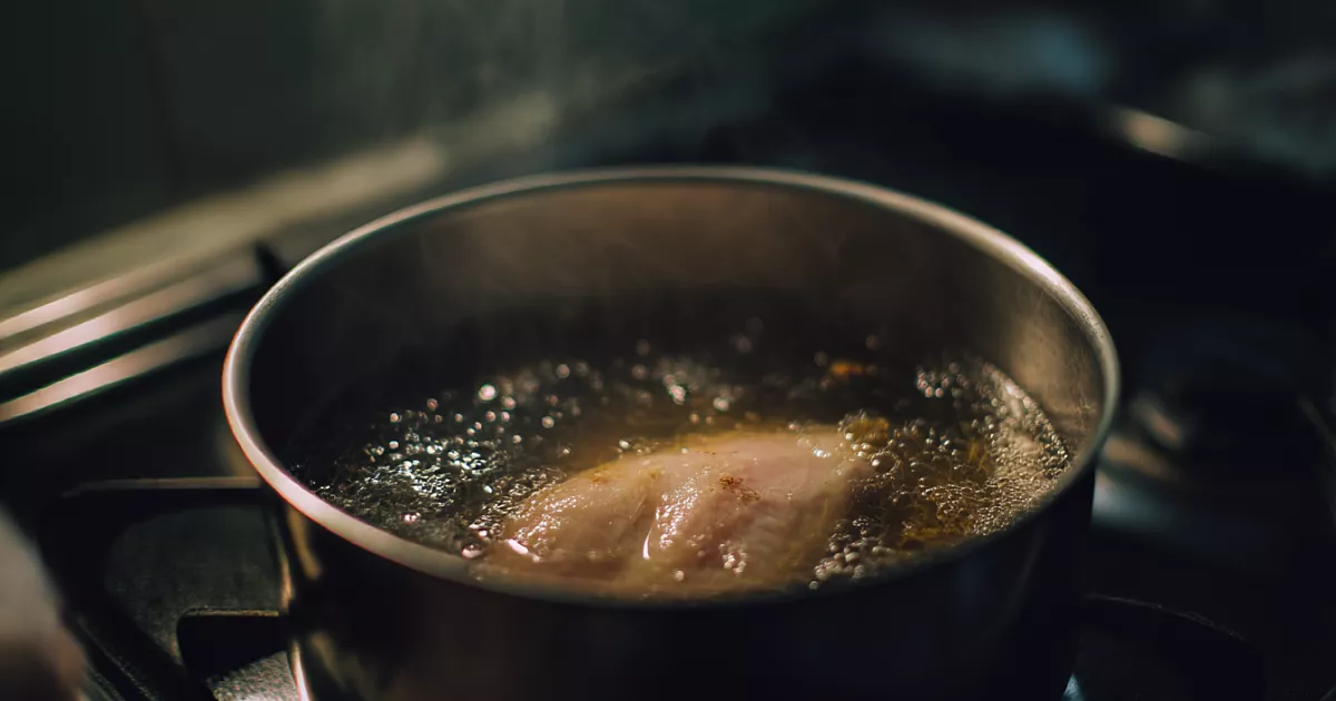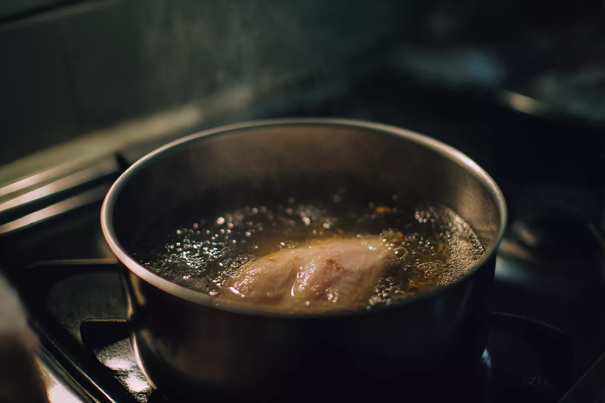 Главный секрет — не кипятить, а томить при низкой температуре. Положите грудку в холодную воду (чтобы она равномерно прогрелась). Добавьте соль, лавровый лист, перец горошком, луковицу или морковь для аромата — но не переборщите, чтобы не перебить вкус курицы.