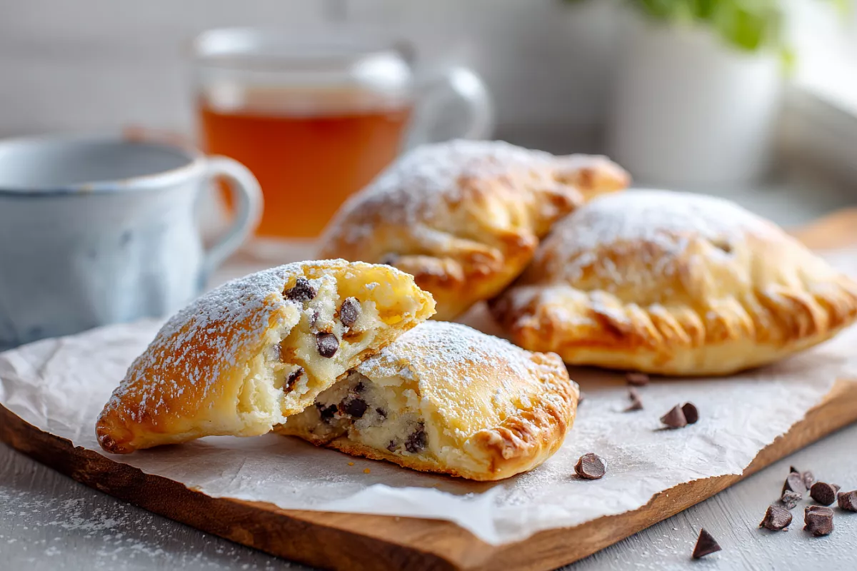 Охлаждённое тесто делим на 12 частей, каждый кусочек раскатываем в круг диаметром 12–15 см (тонко). В центр кладём 1–1,5 ч. л. начинки, складываем пополам, тщательно защипываем края. Выкладываем на противень с пергаментом. Желток смешиваем с небольшим количеством молока и смазываем верх и бока заготовок. Выпекаем в разогретой до 200 °C духовке 15 минут, затем снижаем до 180 °C и печём ещё 10–15 минут до румяной корочки. Остужаем — получаются красивые сочники с трещинками и нежной начинкой.