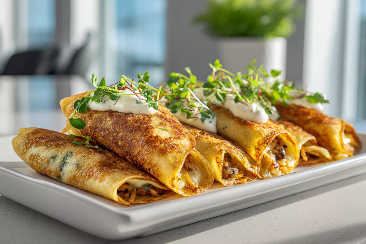 Горячие блины — хрустящие снаружи, сочные и ароматные внутри. Разогревать лучше на сковороде (не в микроволновке — панировка отмокнет). Подаём с чаем, сметаной или соусом. Пробуйте — это любовь с первого кусочка!