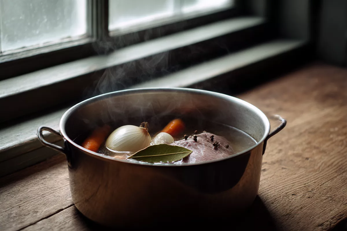 Как только язык сварился — сразу переложите его в миску с ледяной водой (можно добавить кубики льда). Держите 5–10 минут под холодной проточной водой. Резкий перепад температур заставляет кожу отходить легче, как с яйцами. Не давайте языку остыть в горячем бульоне — тогда чистить будет мучительно.