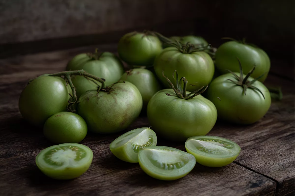 Зелёные помидоры не дозрели но уже имеют свой характерный вкус кисло-сладкий с лёгкой терпкостью и плотной мякотью. Именно эта плотность делает их идеальными для заготовок и горячих блюд — они не разваливаются при нагреве и хорошо держат форму. Кислота в них естественная и яркая поэтому они отлично балансируют жирные или тяжёлые блюда.