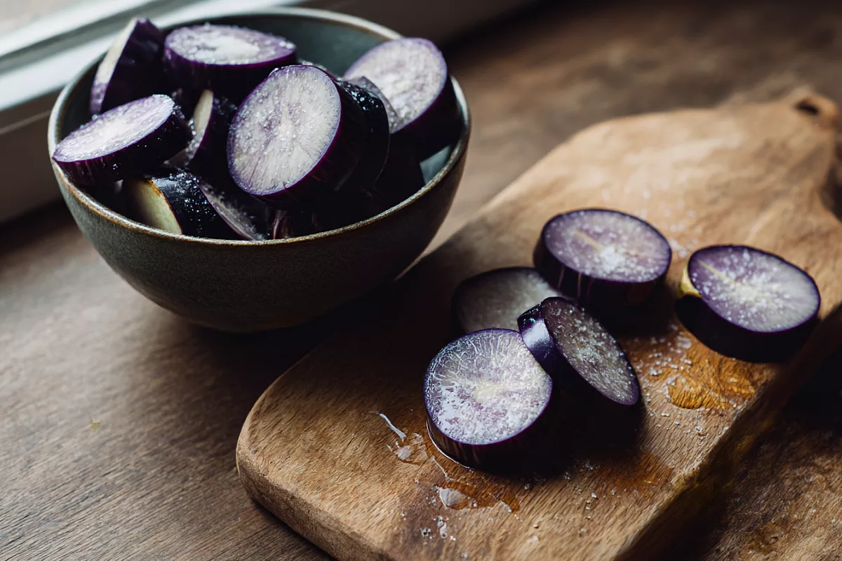 Как делать правильно: нарежьте баклажаны кружочками или брусочками посыпьте солью (примерно 1 ч. л. на средний баклажан) перемешайте и оставьте на 20–30 минут. Появится сок — слейте его а баклажаны хорошо отожмите руками или промокните бумажными полотенцами. После этого промойте холодной водой чтобы убрать лишнюю соль и обсушите насухо. Теперь можно обвалять в муке яйце или крахмале и жарить — масло не будет впитываться как в губку.