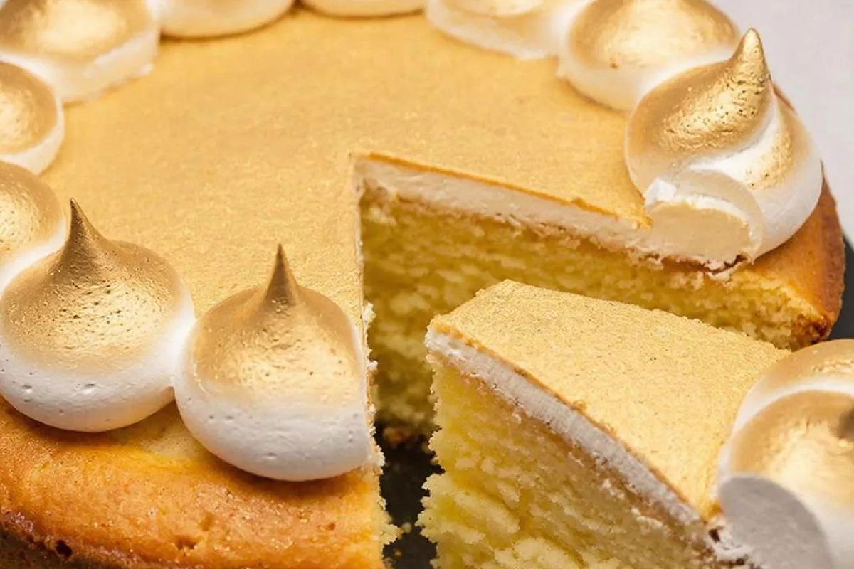 Финальная обработка: Взбейте 3 белка с 100 г сахара до пышной массы и выложите на горячий пирог. Выпекайте еще 20 минут при 170°C.