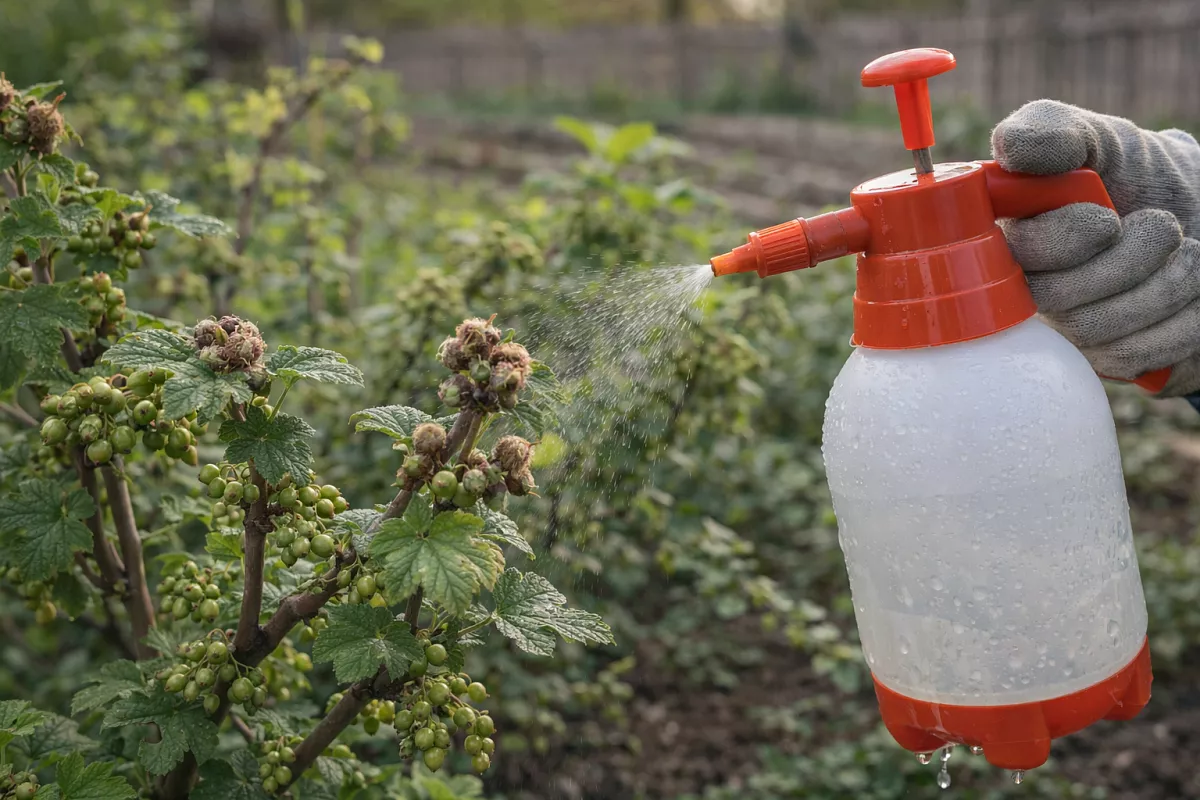 После обрезки проводят обработку. До распускания почек используют препараты на основе минерального масла. Затем, по мере развития куста, применяют акарицидные или инсекто-акарицидные средства – прыскают на ветки. Обычно требуется 2–3 обработки с интервалом 10–14 дней, чтобы воздействовать на разные стадии вредителя.