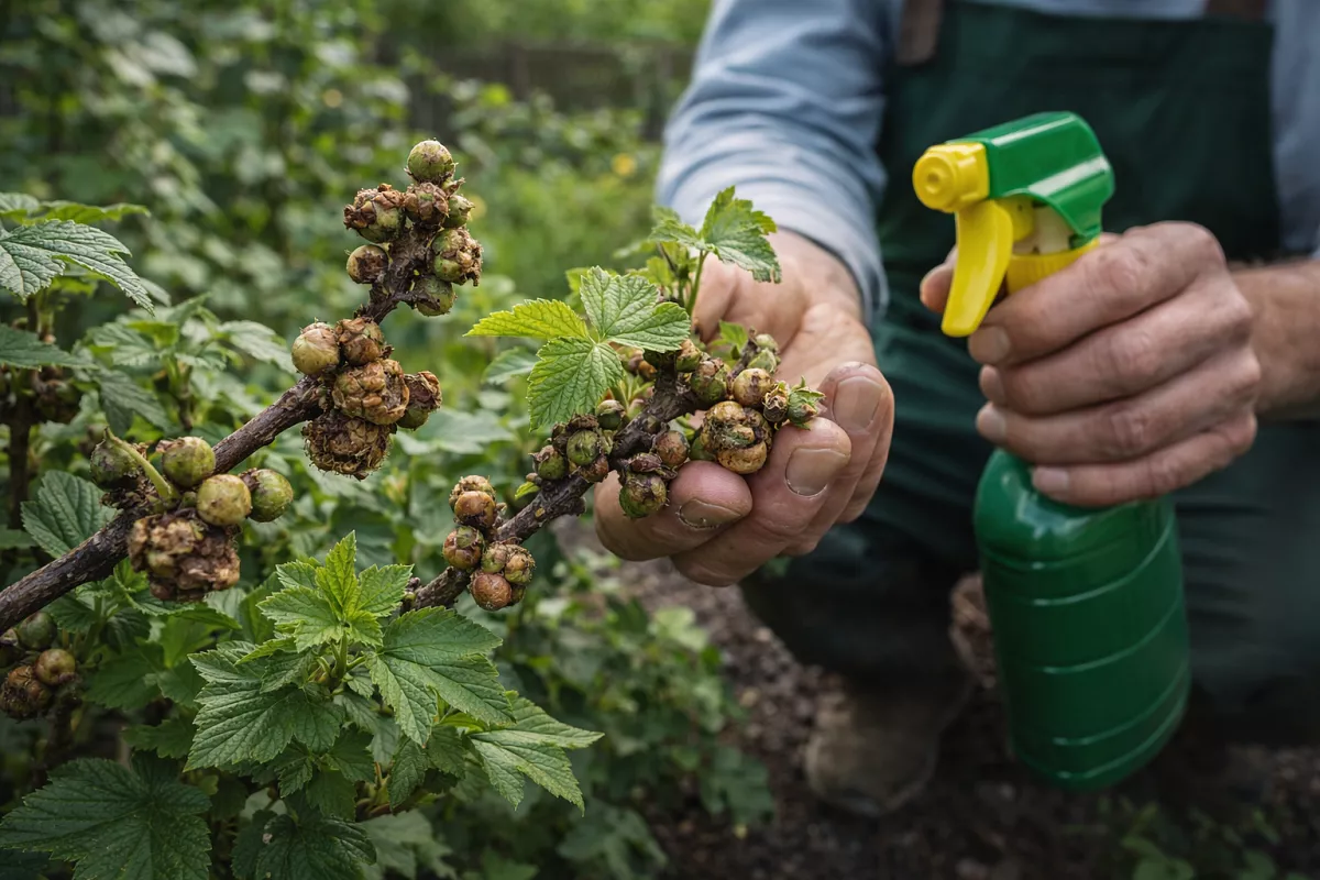 Опытные садоводы Нелли и Галина уверяют, что надёжнее работает другой подход: вручную удалять поражённые почки, вырезать заражённые побеги и сжигать их. Если куст поражён сильно, его лучше удалить полностью, чтобы не заражать остальные посадки. Также важно покупать только здоровые саженцы и выбирать более устойчивые сорта.
