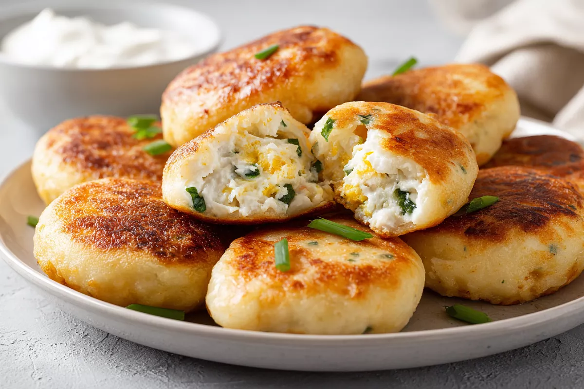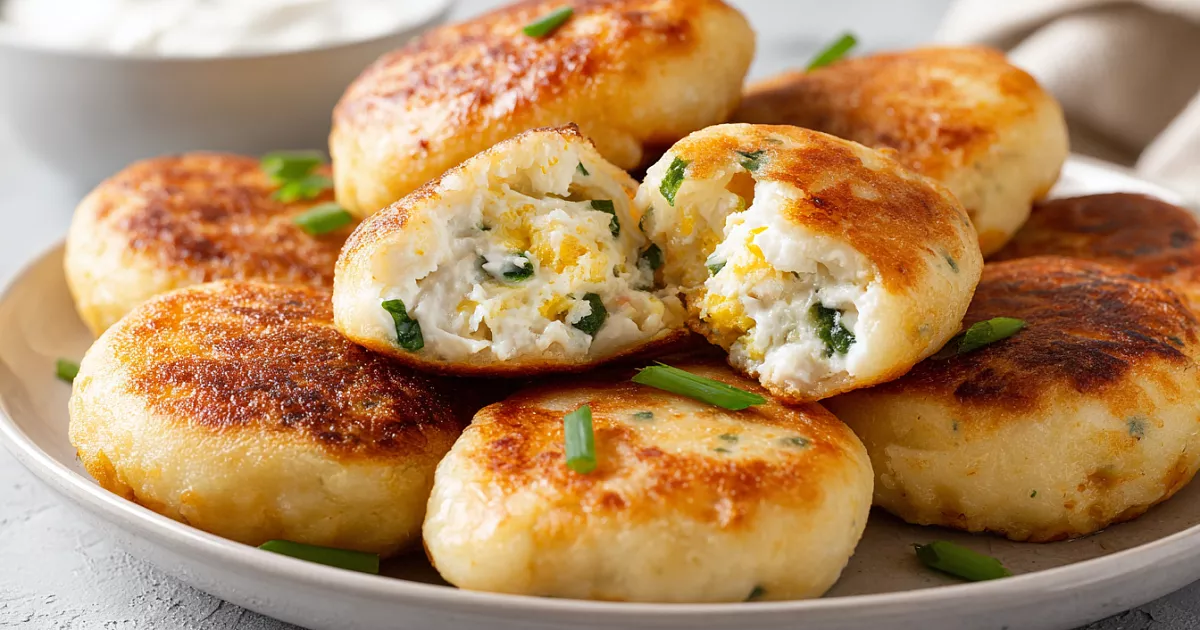 Смачиваем руки водой или растительным маслом и формируем небольшие плоские пирожки. Разогреваем сковороду с небольшим количеством масла на среднем огне. Выкладываем пирожки и жарим под крышкой 4–5 минут с одной стороны до золотистой корочки. Переворачиваем и жарим ещё 3–4 минуты с другой стороны. Готовые пирожки получаются румяными снаружи и очень нежными внутри.