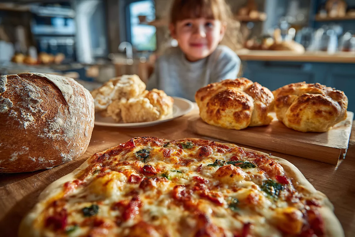 В 800 мл тёплой воды добавляют 1 ст. л. сахара и 5 г сухих дрожжей (или 15–20 г свежих). Перемешивают и оставляют на 5–10 минут. В большую миску просеивают 1 кг муки, добавляют 2 ч. л. соли. Вливают дрожжевую смесь и 3 ст. л. растительного масла. Перемешивают ложкой или лопаткой до однородности — тесто должно получиться мягким, слегка липким. Накрывают и оставляют на 30–40 минут в тёплом месте.