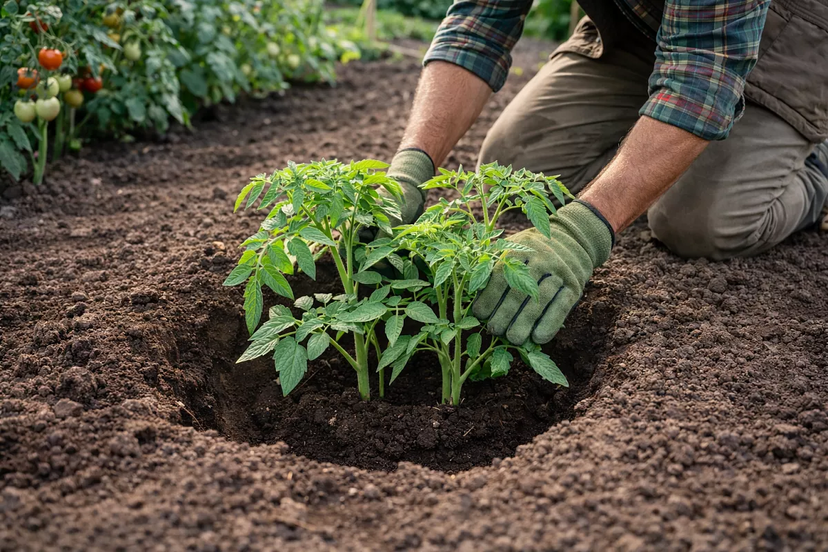 Как сажать томаты в одну яму, чтобы сократить полив и забыть о вершинной гнили. Простой метод, который даёт стабильный урожай.