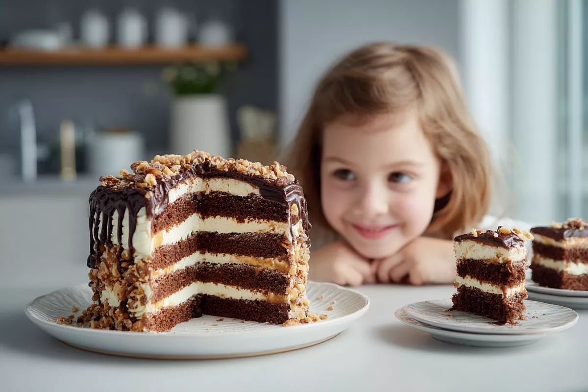 Этот домашний шоколадный торт готовится без миксера и духовки. Получается настоящий праздничный торт из самых обычных продуктов.