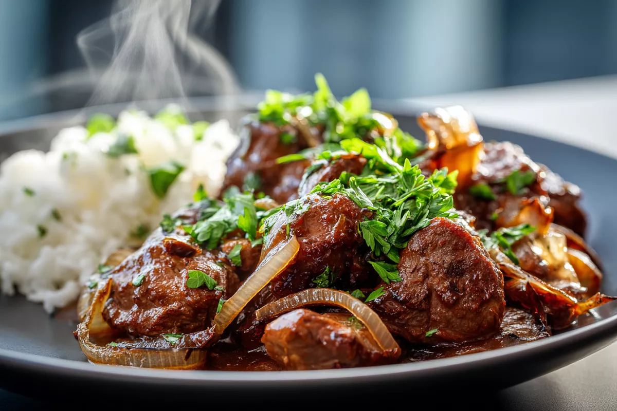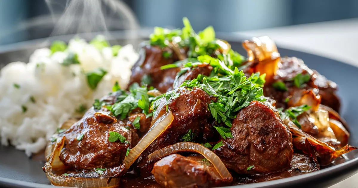 Блюдо получается очень ароматным, мясо мягким и сочным, а лук — сладким и нежным. Подавайте горячим с любимым гарниром. Обязательно попробуйте этот рецепт — он понравится всей семье!