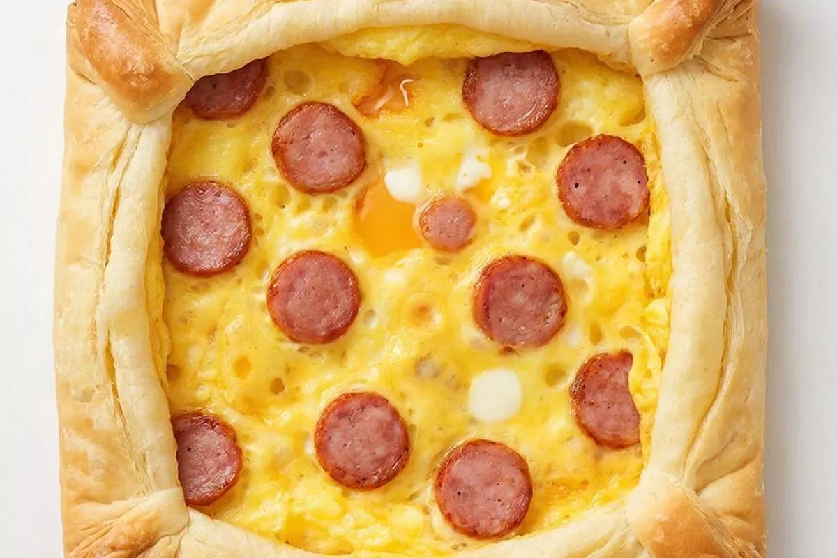Слоеная выпечка с запеченным яйцом и колбасой — это сытный и аппетитный завтрак.