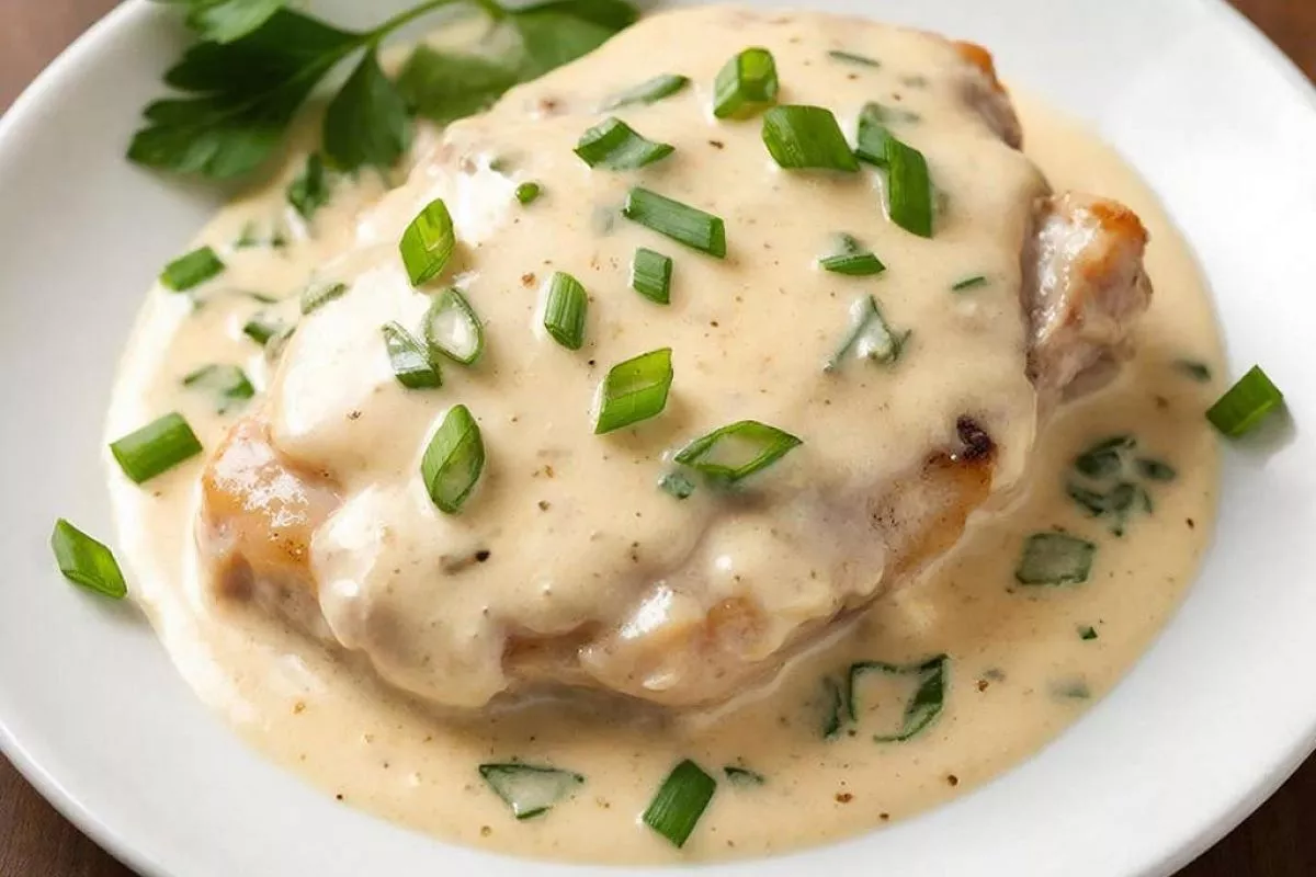 Нежный соус с ароматным чесноком идеально сочетается с куриным филе, которое сначала обжаривается, а затем запекается в духовке. На гарнир можно подать макароны или картофельное пюре.