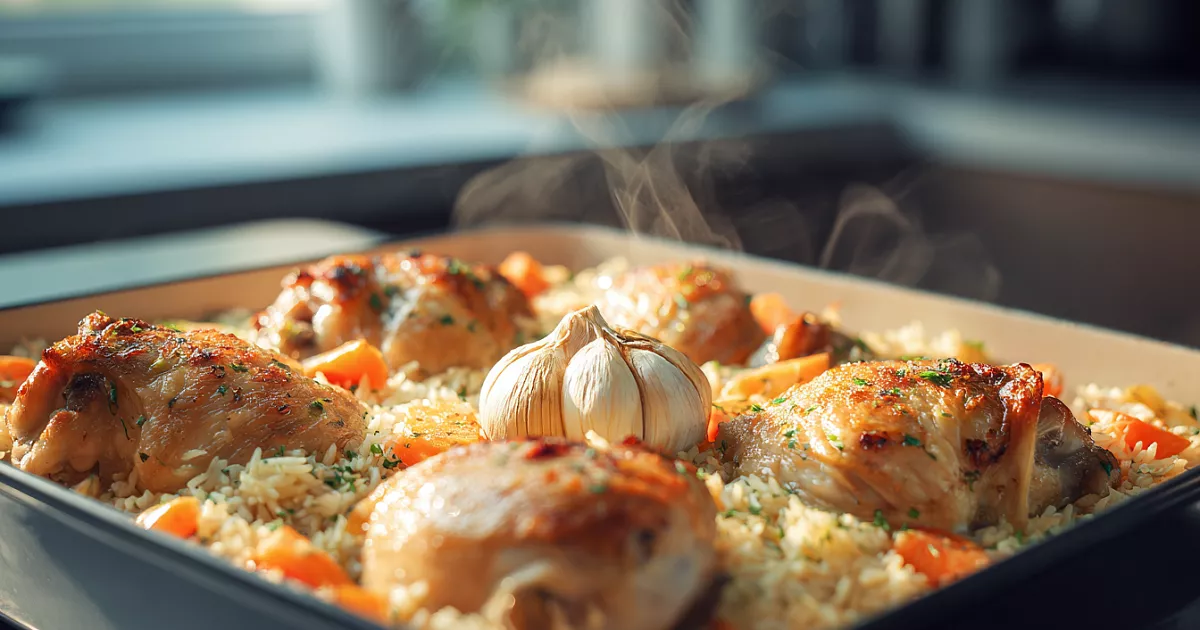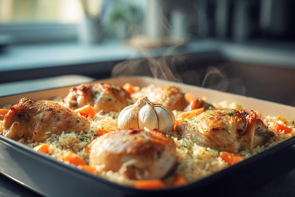 Хотите быстро приготовить сытный ужин без лишних хлопот? Куриные бедра с рисом и овощами получаются ароматными и очень вкусными.