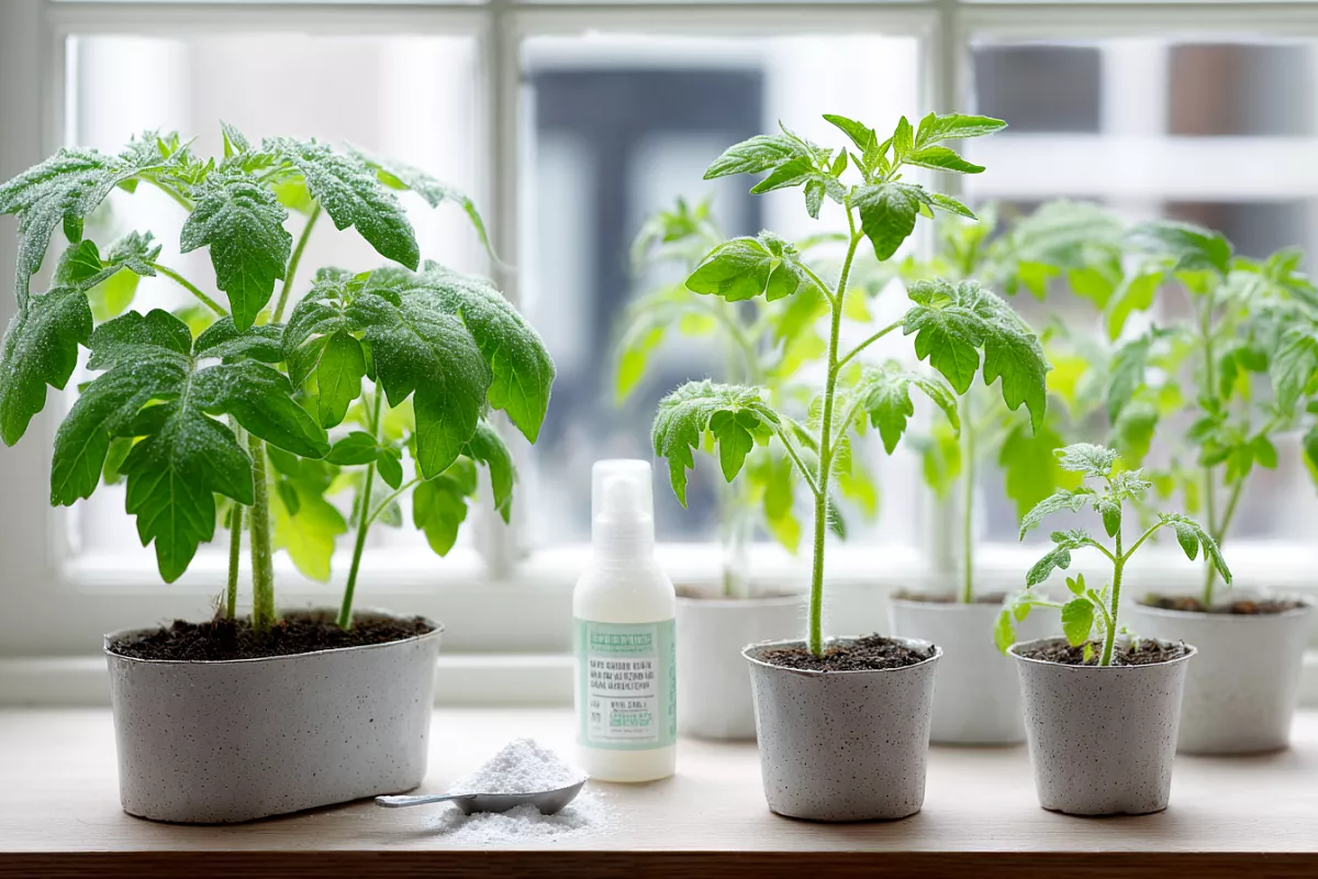 2. Через 1 час — внекорневая подкормка: 1 г монофосфата калия на 0,5 л воды. Опрыскиваем мелким туманом, чтобы раствор осел на листьях лёгкой дымкой, без стекания. Через 7–9 дней после второго цикла рассада заметно темнеет, становится крепче и меньше тянется.