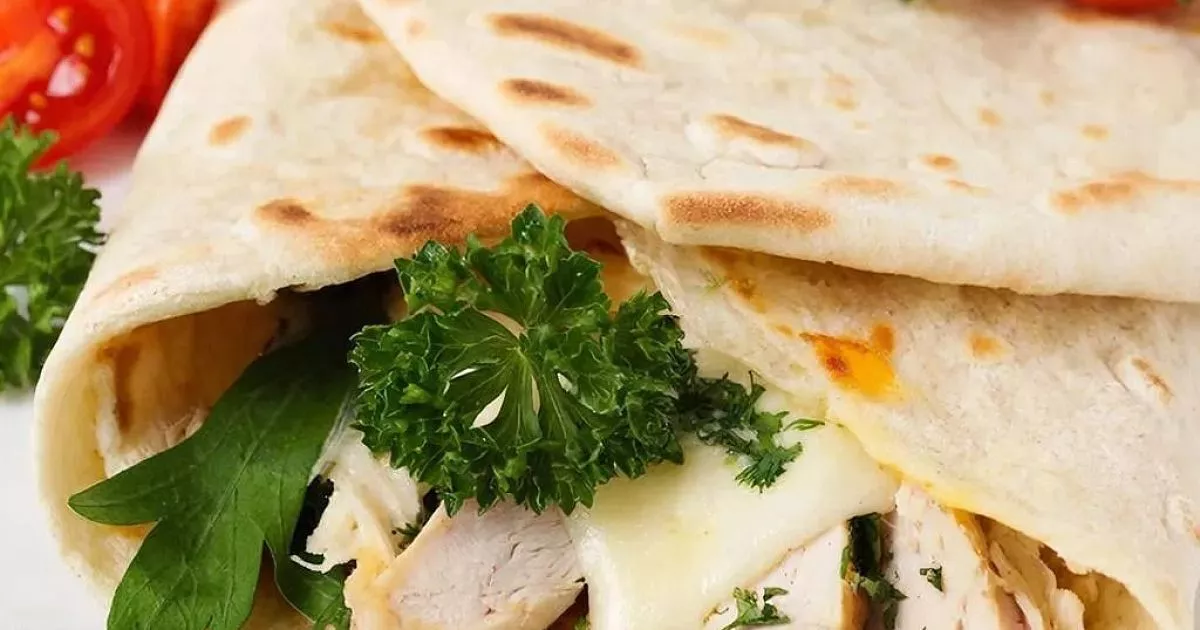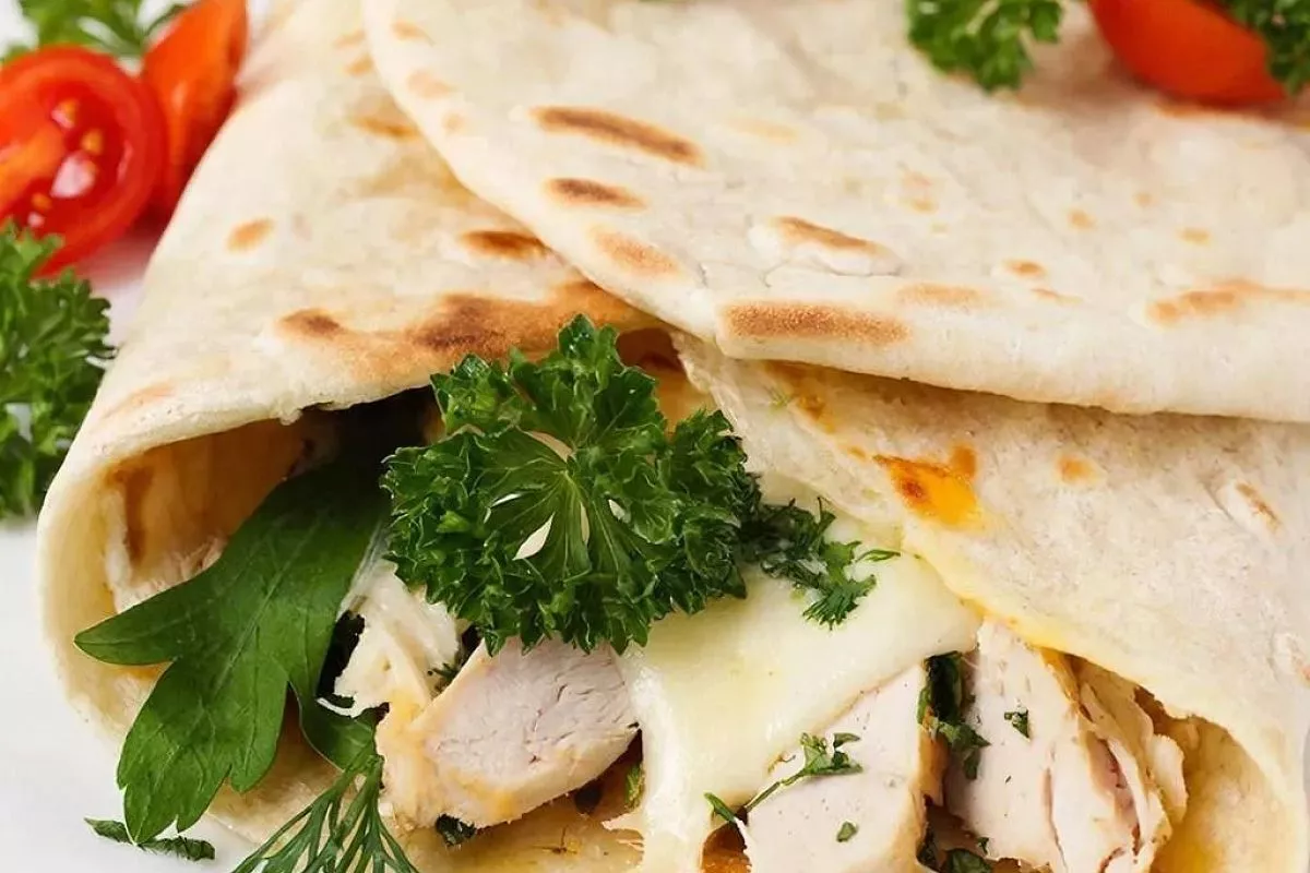 Ингредиенты для приготовления блюда: 200 граммов отваренного куриного филе; 160 граммов творожного сыра; 90 граммов твердого сыра или моцареллы; 250-300 граммов помидоров; 1 столовая ложка сливок с жирностью 35%; 2 столовые ложки сметаны; 2-3 веточки укропа и петрушки; 2 зубчика чеснока (по желанию); соль и перец по вкусу; 2 листа лаваша; 1 желток для смазывания