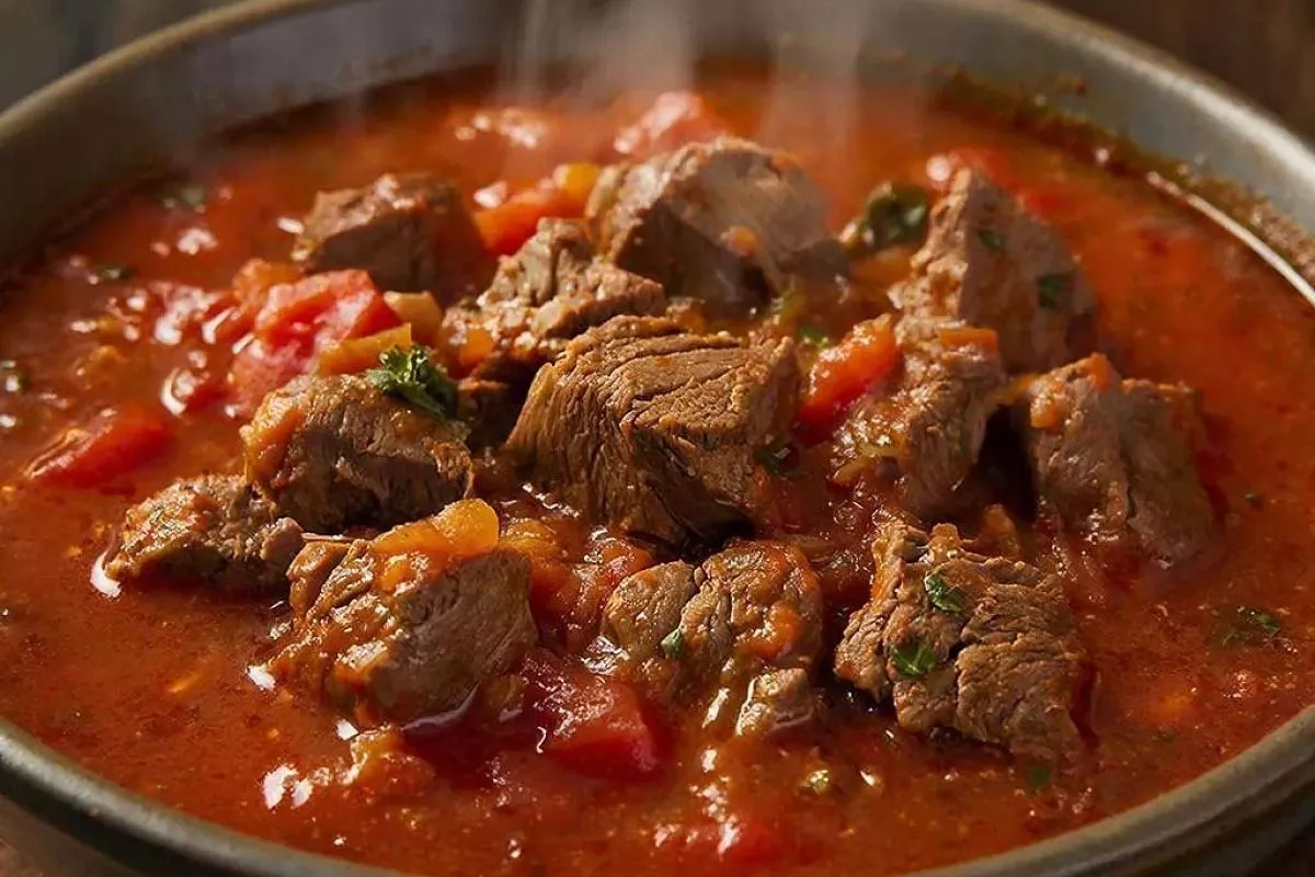 Для приготовления гуляша не обязательно использовать вырезку или другие премиальные отрубы. Подойдет и более жесткая говядина, которая станет мягкой после длительного томления в томатном соусе.