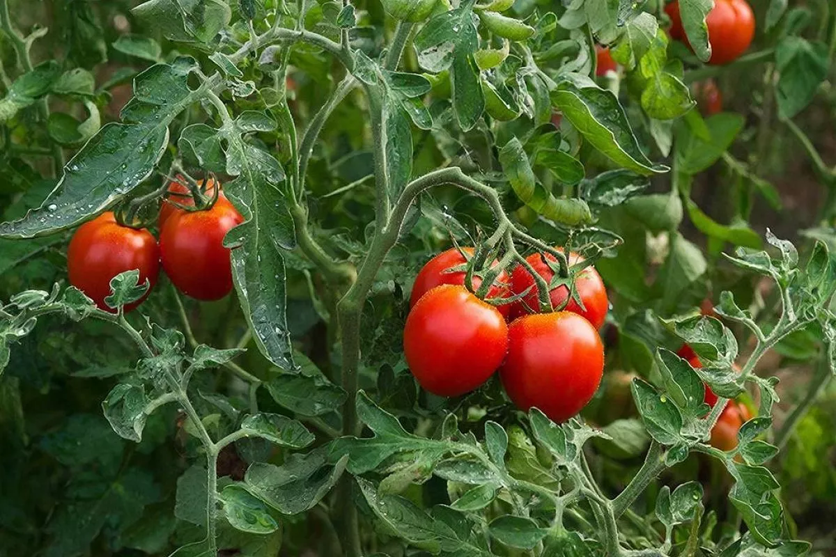 Уход за растениями сводится к подвязке стеблей к колу по мере роста. Все растения подвязываются одной ленточкой или шпагатом. Пасынки не обрезаются. Плоды подвязывать не нужно, так как они сами располагаются на загущенных стеблях и листьях. Удобрять помидоры не нужно, так как все удобрения внесены при подготовке лунок. При большом количестве плодов можно раз в две недели поливать раствором куриного помета (1:50) или навоза (1:25). Кусты опрыскивались три раза: перед высадкой 1-процентным раствором бордосской жидкости или оксихомом, после высадки (через 15-20 и 35-45 дней) — раствором фундазола или оксихома. Высаженные таким образом помидоры дают дополнительные корни на заглубленном стебле и быстро трогаются в рост.