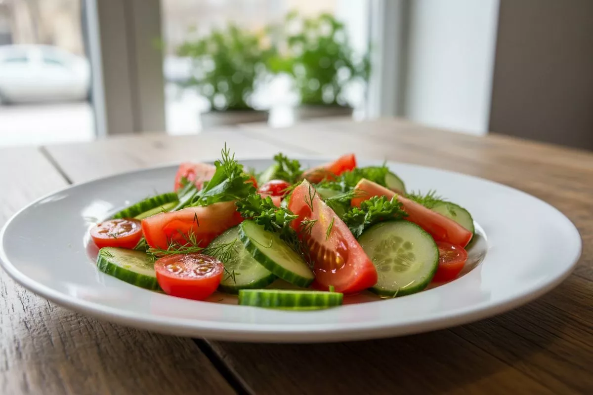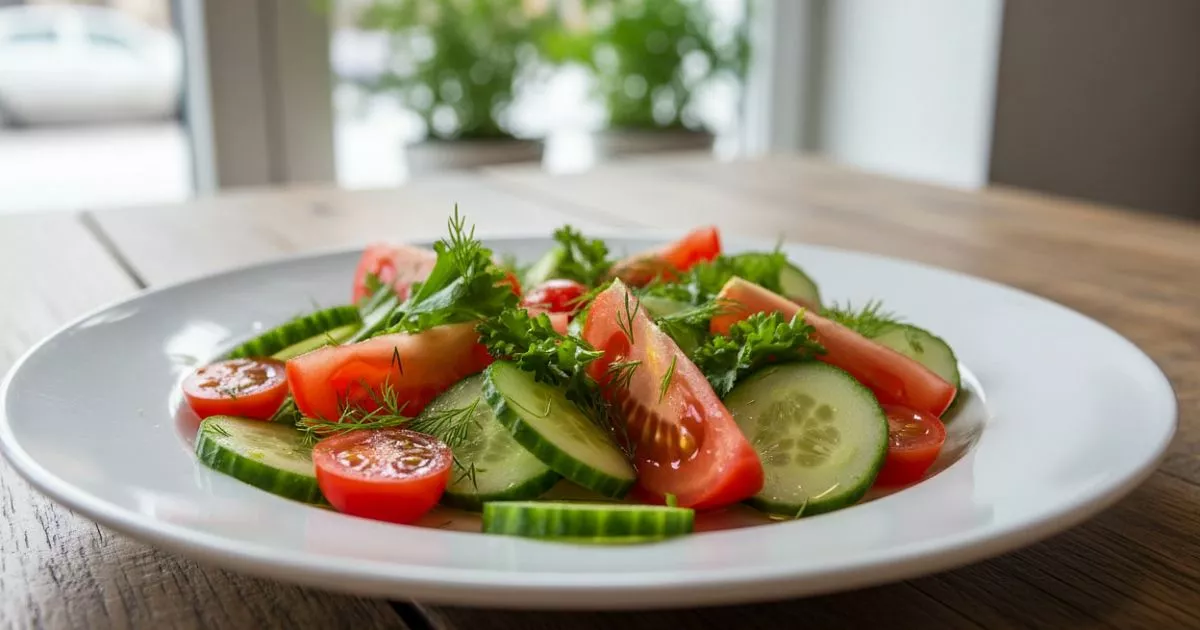 Первый секрет - правильная нарезка. Огурцы лучше нарезать тонкими лентами овощечисткой, а помидоры - аккуратными дольками одинакового размера. Это создаст визуальную гармонию.