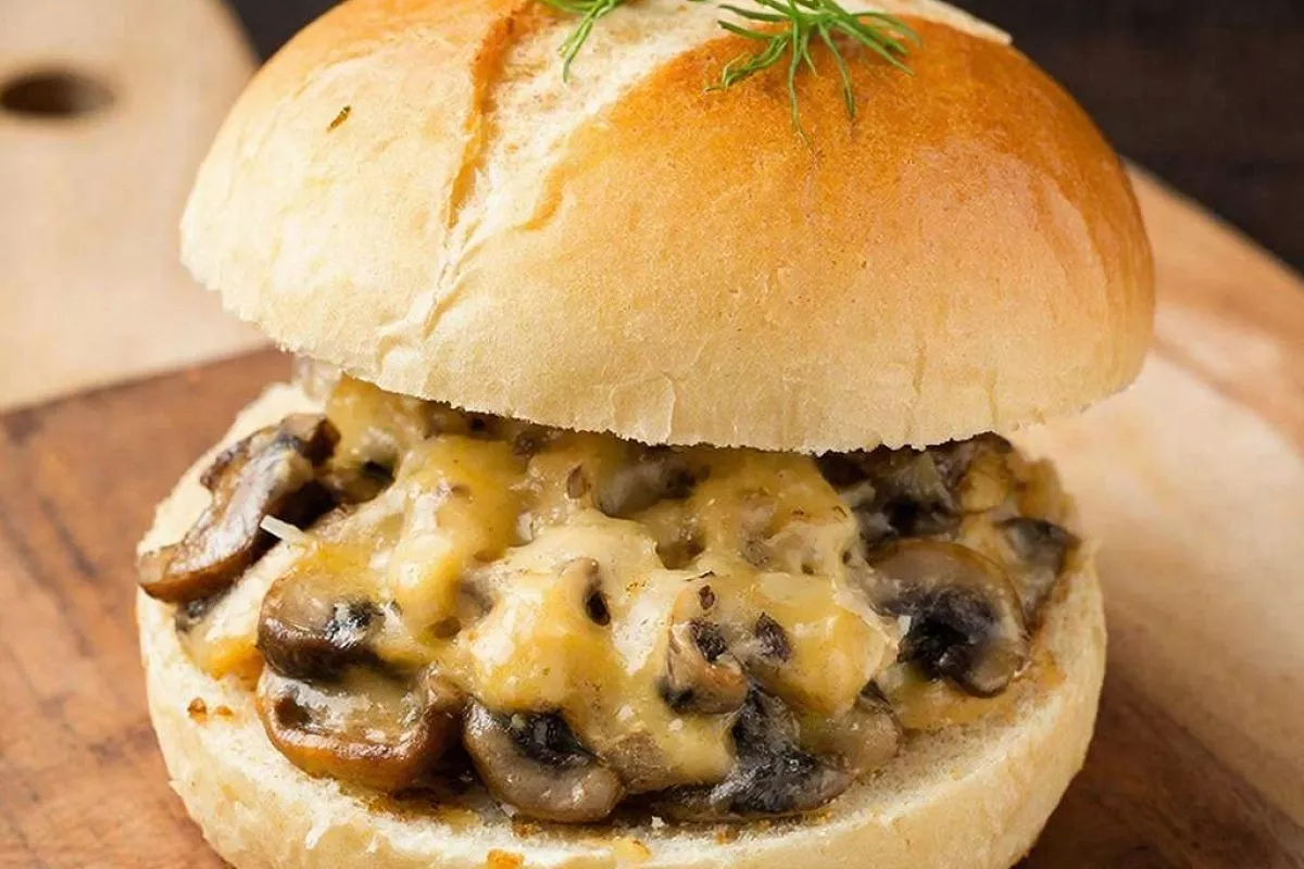 Ингредиенты для приготовления: Куриная грудка — 200 г; шампиньоны — 250 г; небольшая луковица — 1 шт.; сыр — 100-150 г; соль, черный молотый перец — по вкусу; мука — 1 ч. ложка; сметана — 2-3 ст. ложки. Маленькие круглые булочки — 6-7 шт.