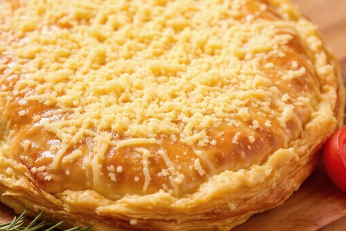 Ингредиенты: слоеное тесто — 2 листа (около 500 г); творог — 70 г; сыр — 100–120 г (можно использовать моцареллу, сулугуни, гауду или их смесь); зеленый лук — 1 небольшой пучок; сметана (жирностью 20% и выше) — 2–3 столовые ложки; мука — для раскатки (по мере необходимости); яйцо — для смазывания (по желанию, вместо сметаны)