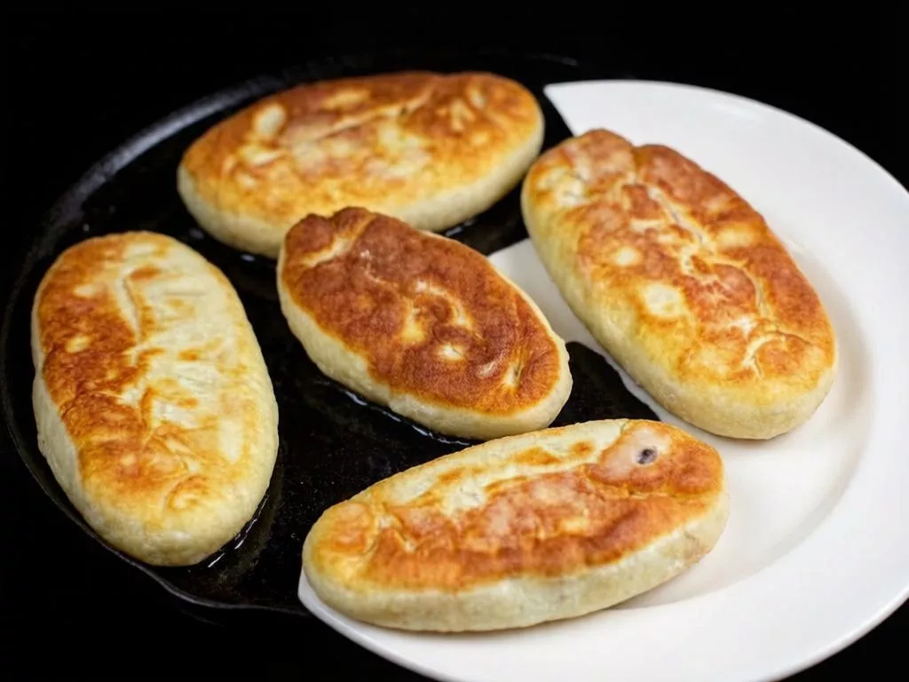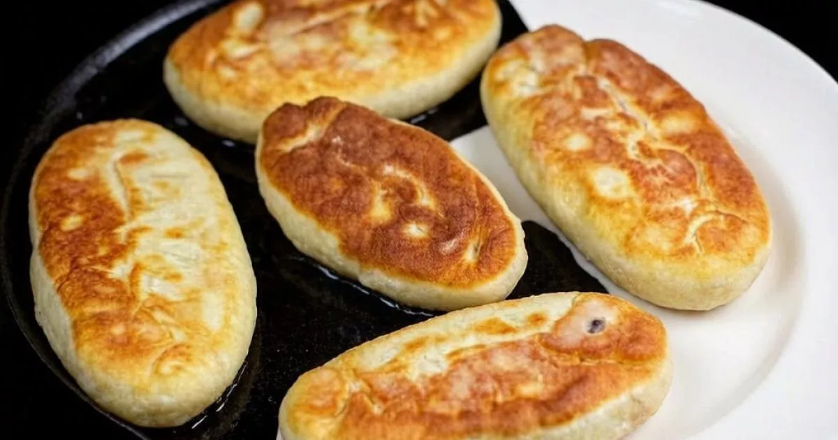 Тесто раскатайте в колбаску, разделите на 15 равных частей. Скатайте в шарики, затем разомните в лепешки. Сформируйте пирожки с начинкой и обжарьте их до хрустящей корочки. Получится около 15 пирожков, которые можно подавать с бульоном или молоком.