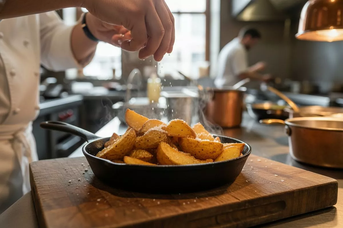 Главное правило – никогда не солите картошку в начале приготовления. Соль вытягивает влагу из овощей, делая их мягкими и препятствуя образованию золотистой корочки. Этот принцип работает для всех способов приготовления: жарки на сковороде, запекания в духовке или во фритюре.