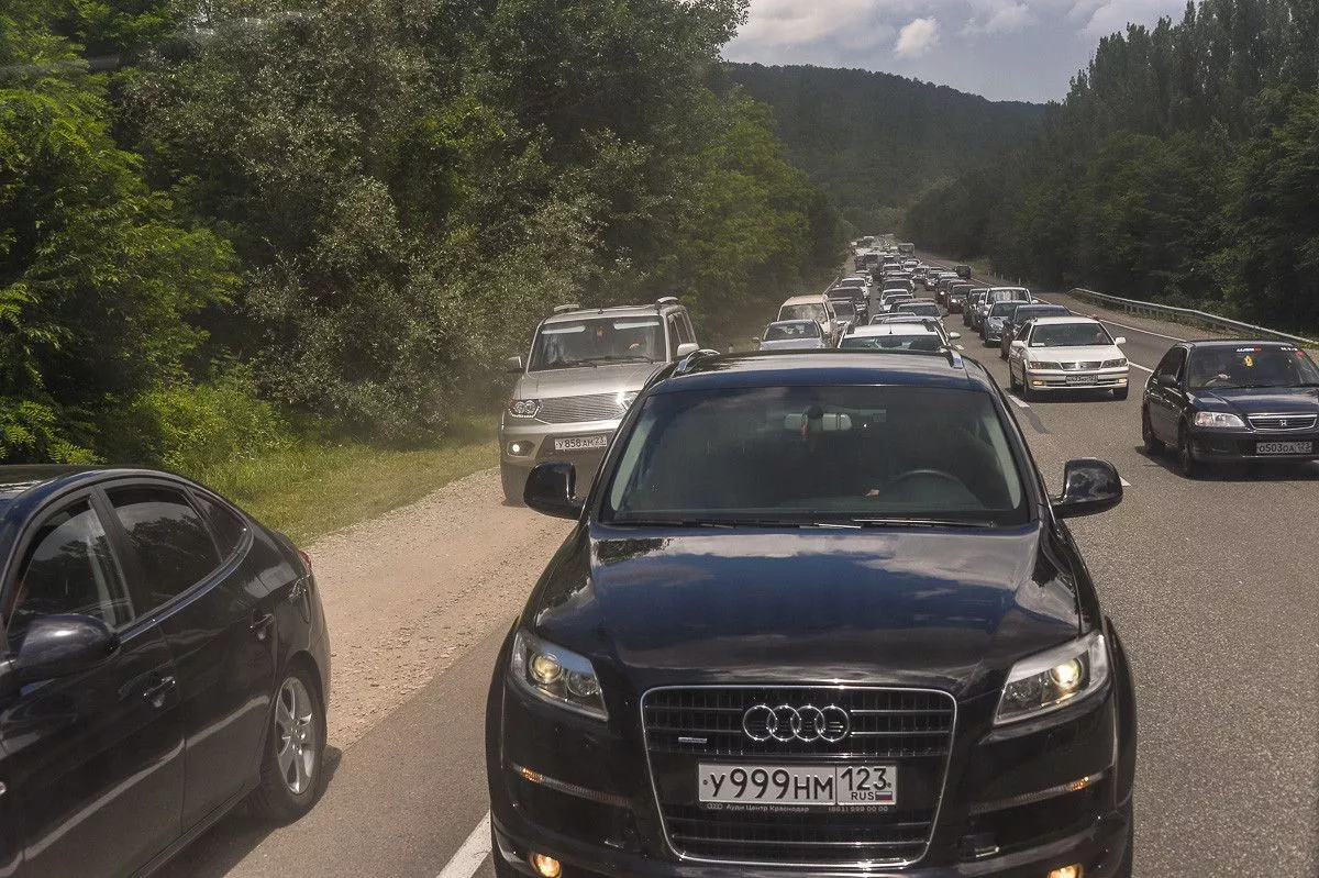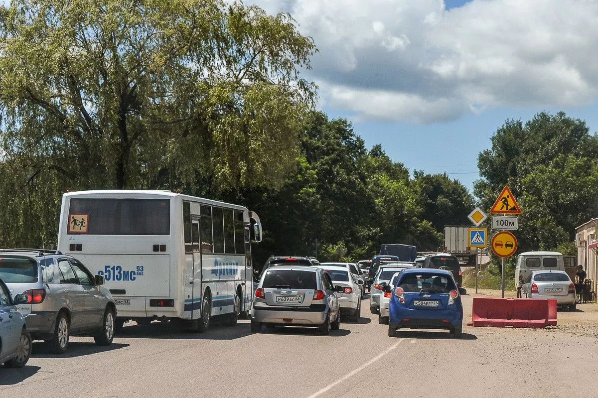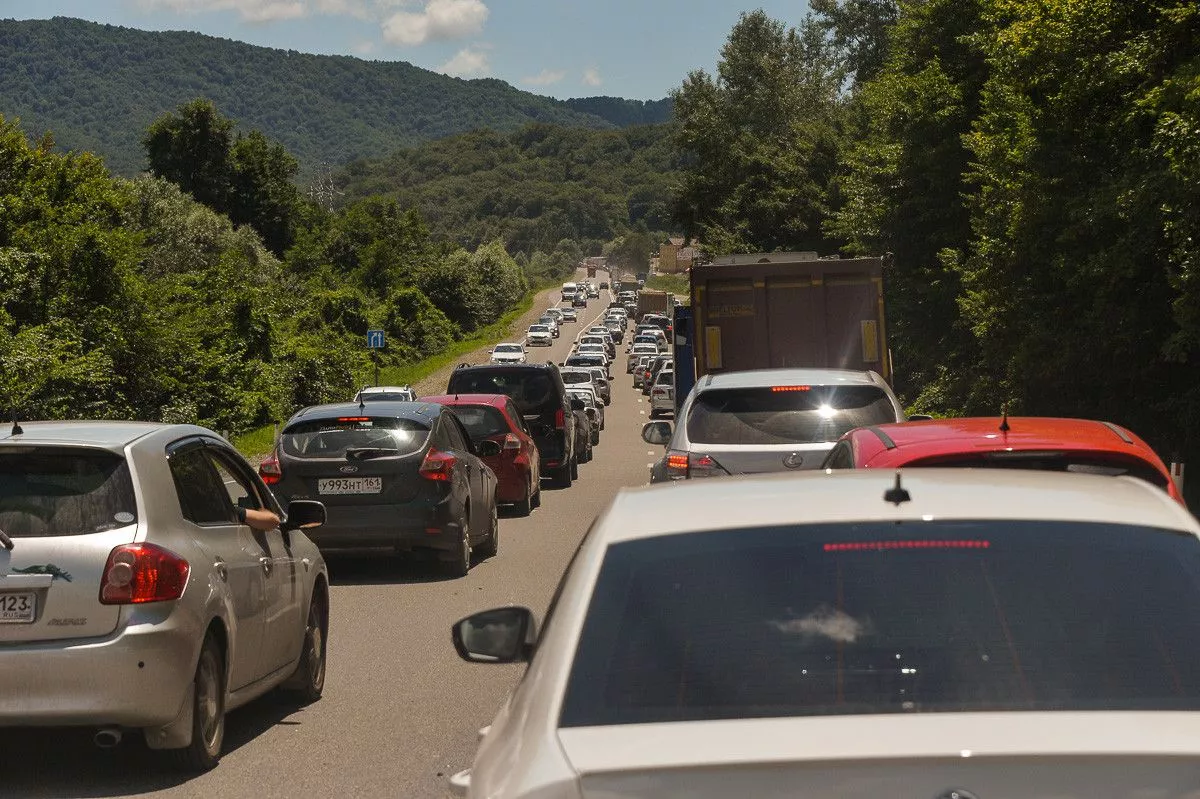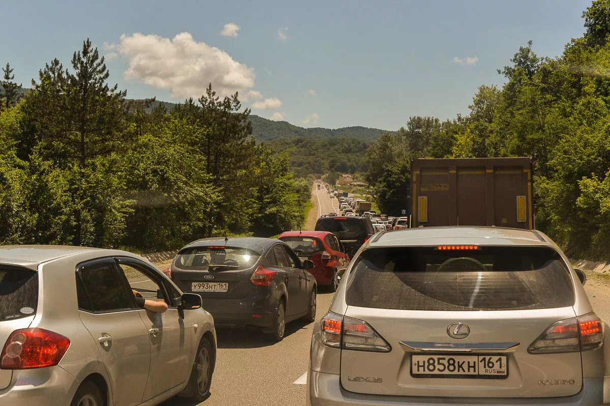 В Туапсинском районе между Дефановкой и Горским идет ремонт дороги, что ведет к постоянным пробкам.