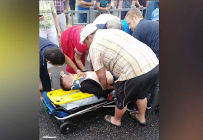 На помощь ему подоспел немецкий болельщик, который прибыл в Сочи на матч Германия-Швеция. Кевин Майер, работающий у себя на родине спасателем, начал делать пострадавшему непрямой массаж сердца и искусственное дыхание, чем спас ему жизнь.
